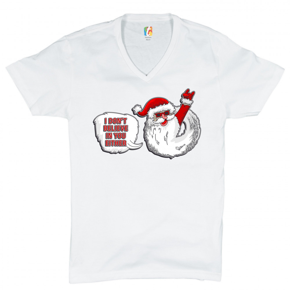 I DON'T BELIEVE IN YOU EITHER v-neck t-shirt santa claus merry christmas tee white