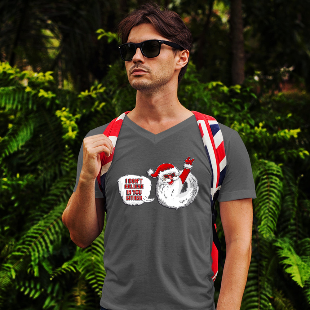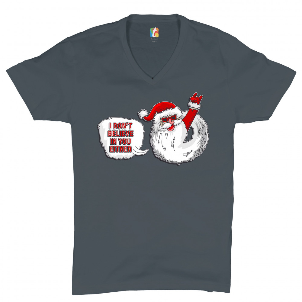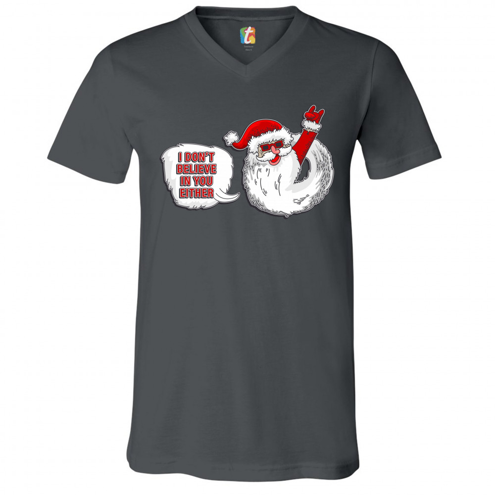 I DON'T BELIEVE IN YOU EITHER v-neck t-shirt santa claus merry christmas tee charcoal