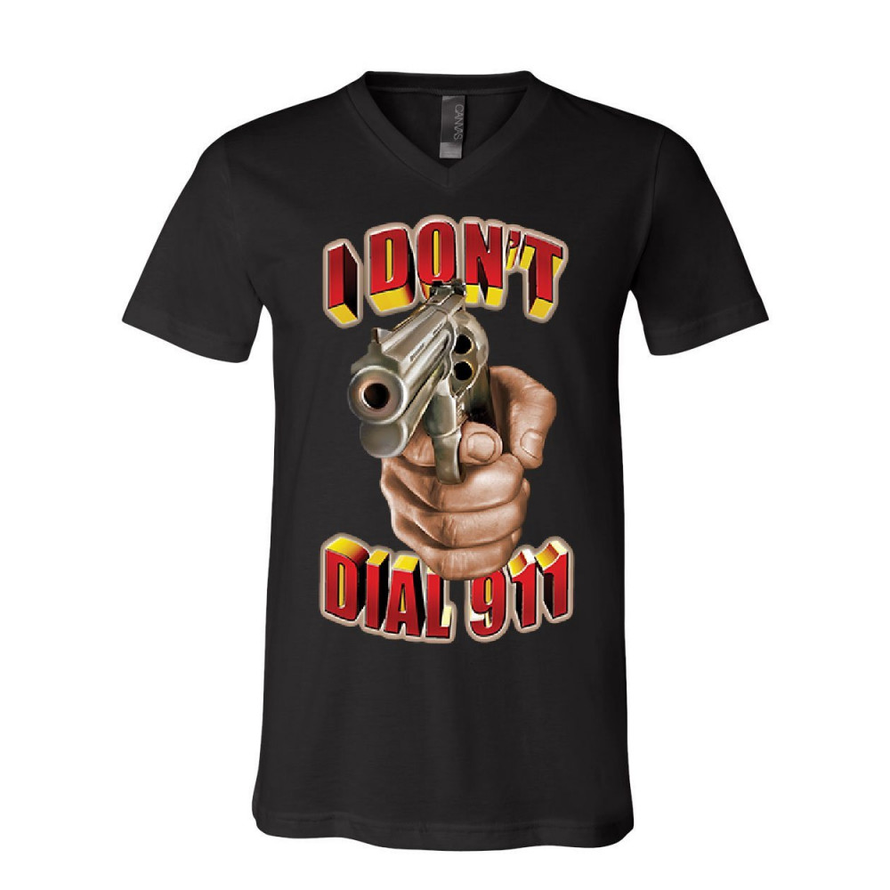 I DON'T DIAL 911 v-neck t-shirt defend 2nd amendment pro guns revolver tee black