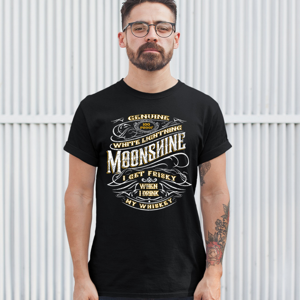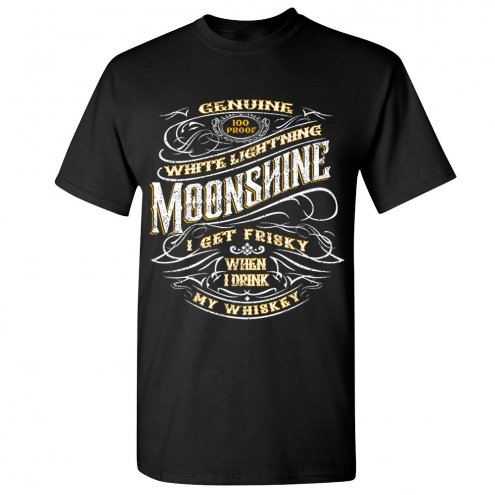 I GET FRISKEY WHEN I DRINK MY WHISKEY t-shirt genuine moonshine men's tee black