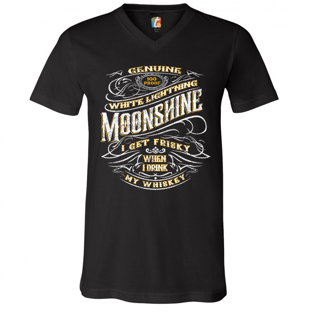 I GET FRISKEY WHEN I DRINK MY WHISKEY v-neck t-shirt genuine moonshine tee black
