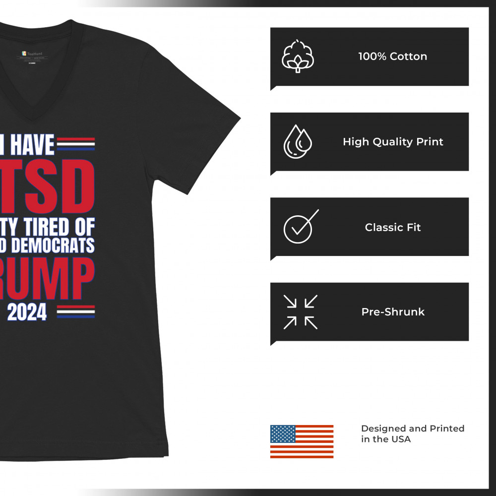 Stand up against the political chaos with "I have PTSD Pretty Tired of Democrats, Trump 2024" tee. As a dedicated supporter of conservative values, join the Trump Train to victory. Trust in God, not government, and reject the traitors to our nation. Let the American flag symbolize our resilience as we fight for President Trump and the future of America.