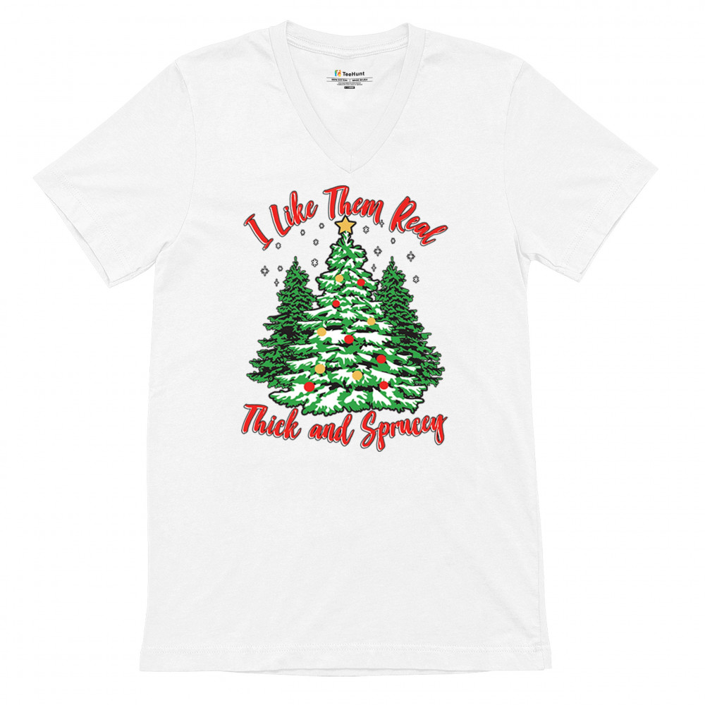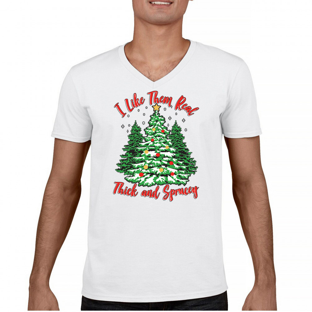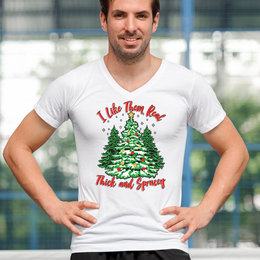 Enjoy the holiday season with our "I Like Them Real, Thick, and Sprucey" Christmas tree design, perfect for festive gatherings and holiday gifting!