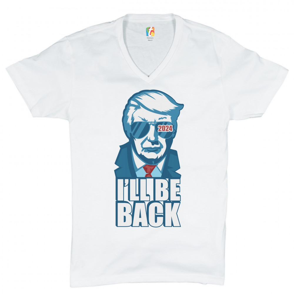 I'LL BE BACK DONALD TRUMP 2024 v-neck t-shirt take america back two terms tee white