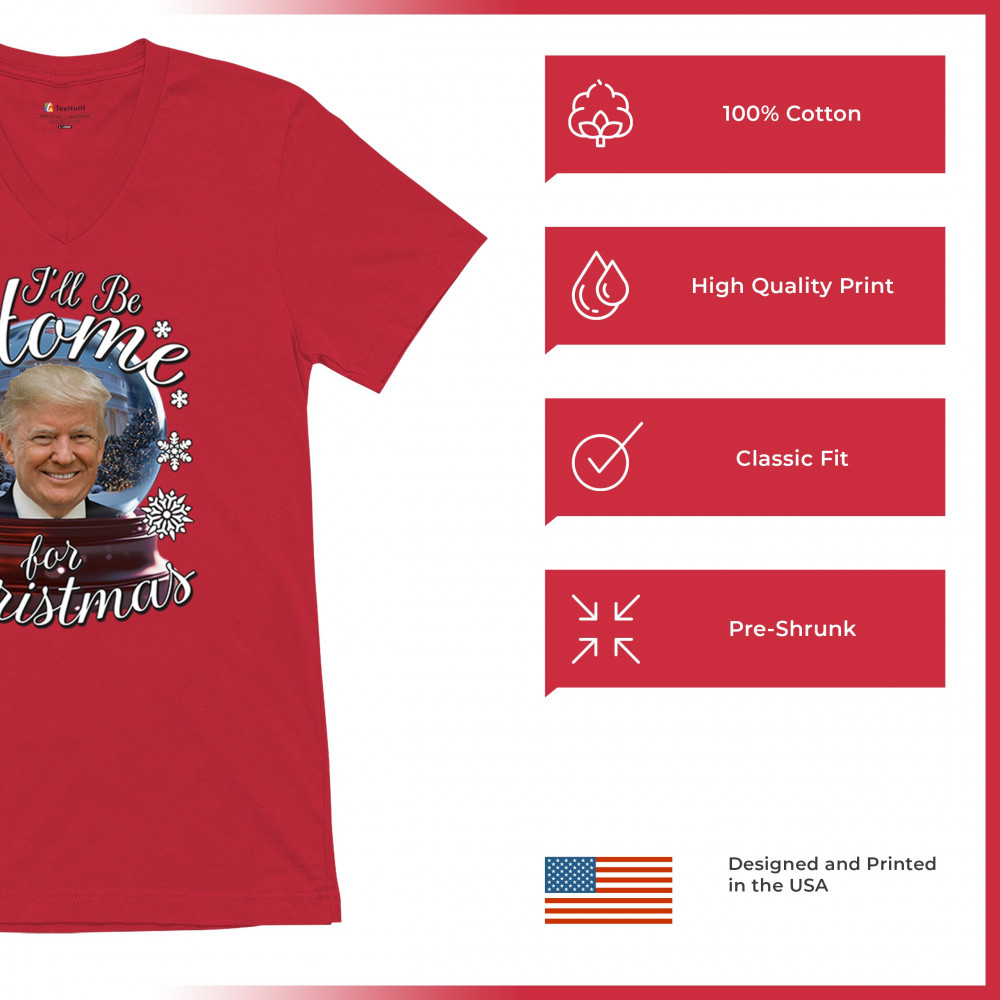 Get ready for the ultimate blend of holiday cheer and American pride with this "I'll Be Home for Christmas" design featuring Donald J. Trump in a festive snow globe. Perfect for gifts, holiday parties, or cozy mornings, this standout piece celebrates the season with style. Whether paired with matching pajamas or a cozy sweatshirt, it's a perfect way to add patriotic charm to your Feliz Navidad celebrations or office gatherings.