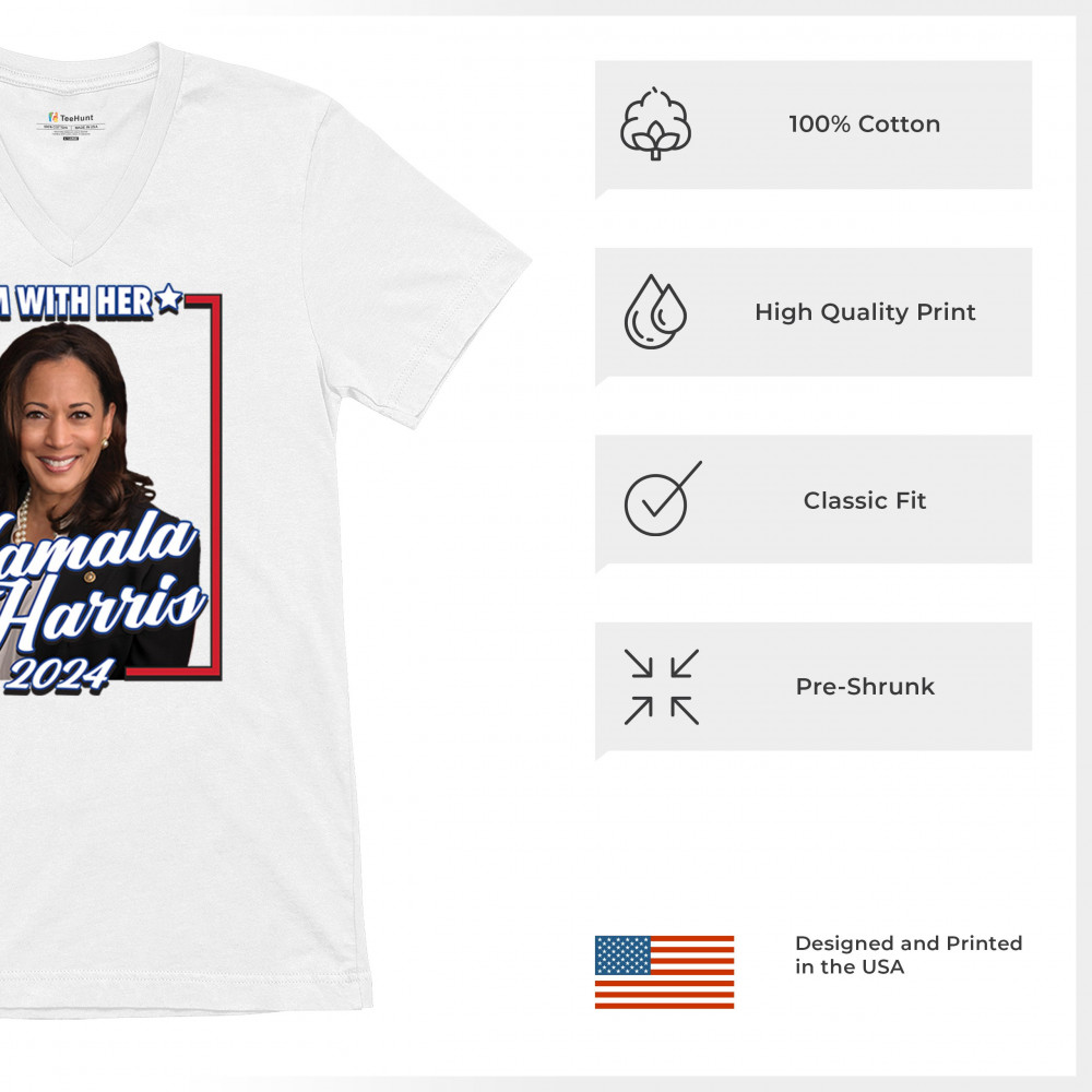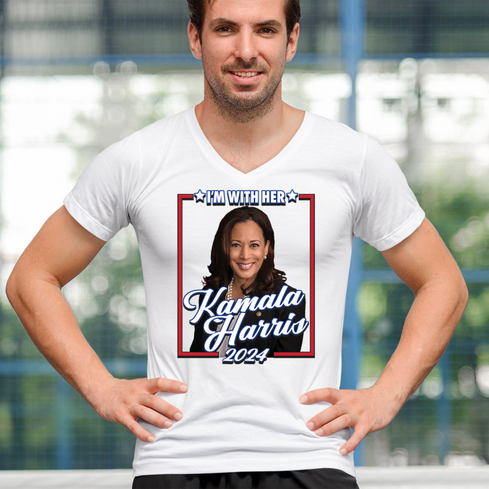 Stand with Kamala Harris in her 2024 presidential campaign with this vibrant design. Highlighting her commitment to progressive causes, this design is perfect for supporters of LGBTQ+ rights, women's rights, and social justice. Featuring the iconic "I'm With Her" slogan, it's a bold statement for anyone who believes in a brighter future. Wear it to rallies, events, or any day to show your support for Kamala Harris and her vision for America. A great addition to any supporter’s collection!