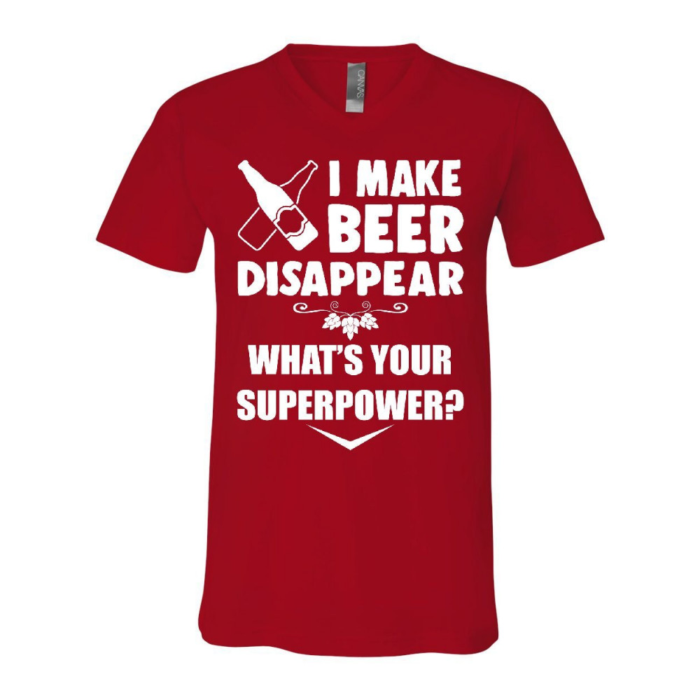 I MAKE BEER DISAPPEAR v-neck t-shirt funny drinking superpower booze tee red