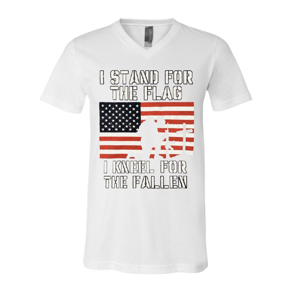 I STAND FOR THE FLAG I KNEEL FOR THE FALLEN v-neck t-shirt patriot military tee white