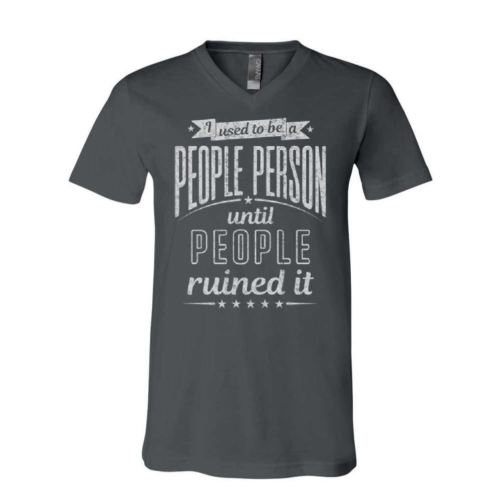 I USED TO BE A PEOPLE PERSON v-neck t-shirt funny sarcasm humor friends tee charcoal