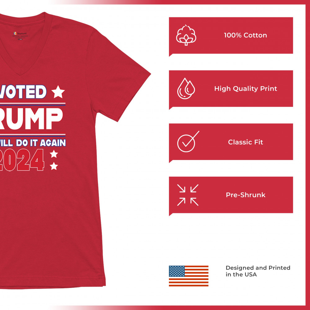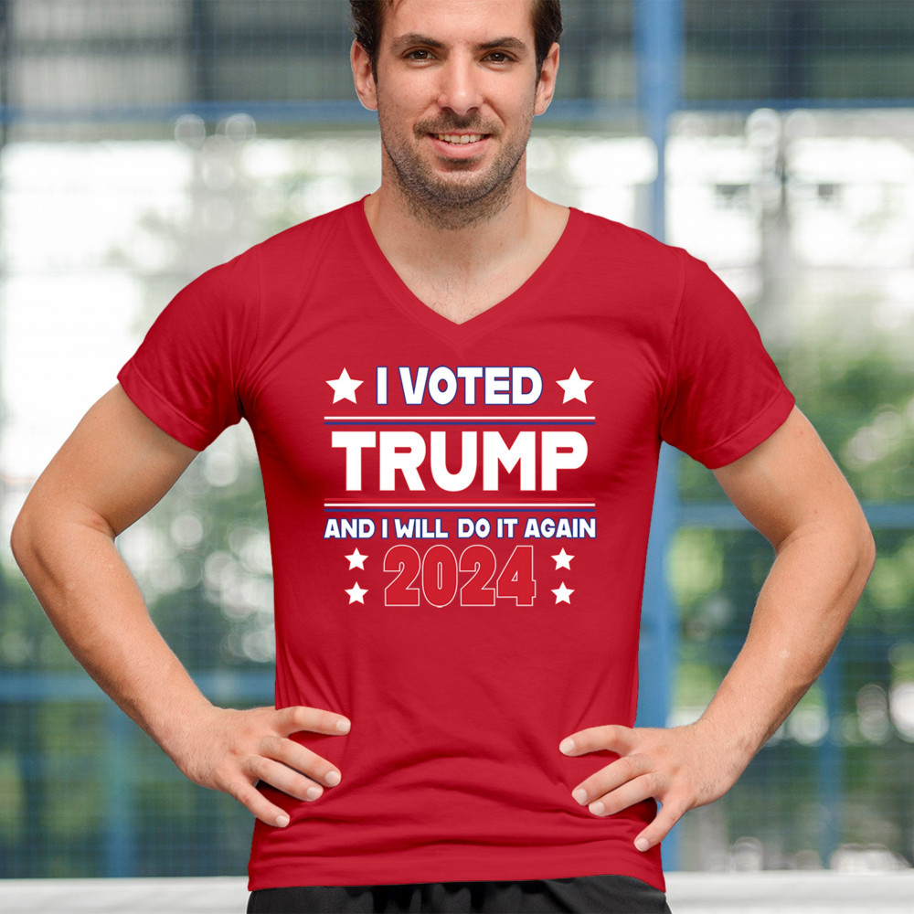 Stand tall as a dedicated Trump supporter with our "I Voted Trump and Will Do It Again 2024" design, showcasing your unwavering commitment to the America First agenda. Let the world know that you stand ready to cast your vote for President Trump once more