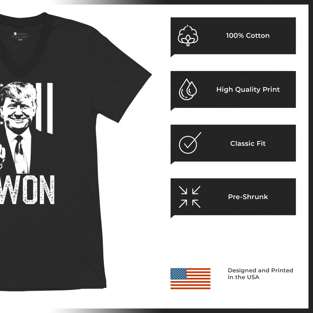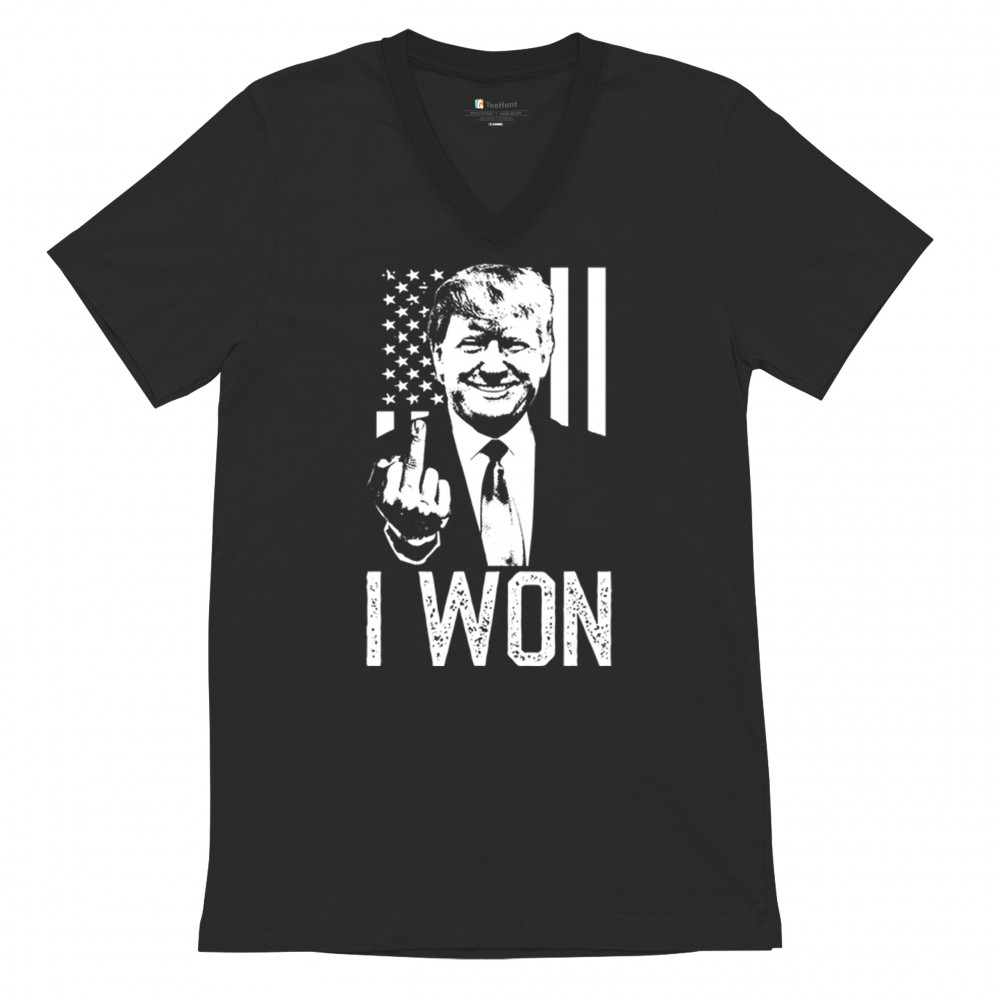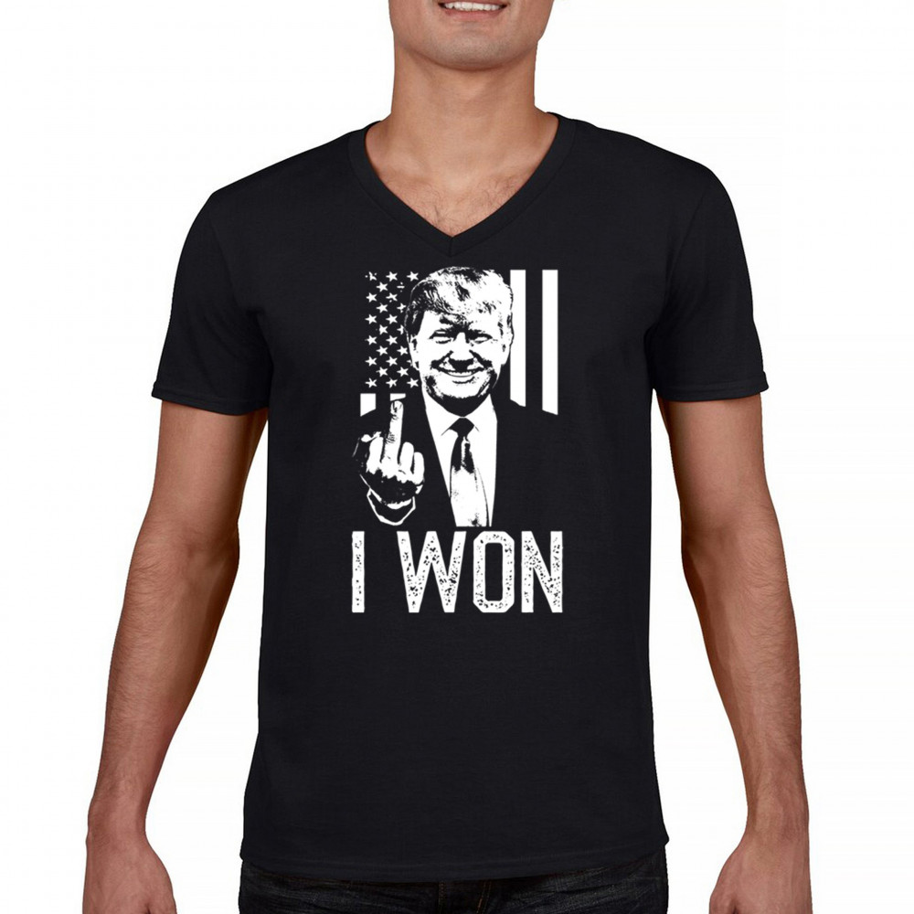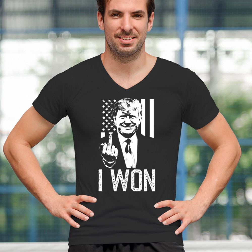 I WON - TRUMP 47 PRESIDENT MIDDLE FINGER v-neck t-shirt maga america first tee black