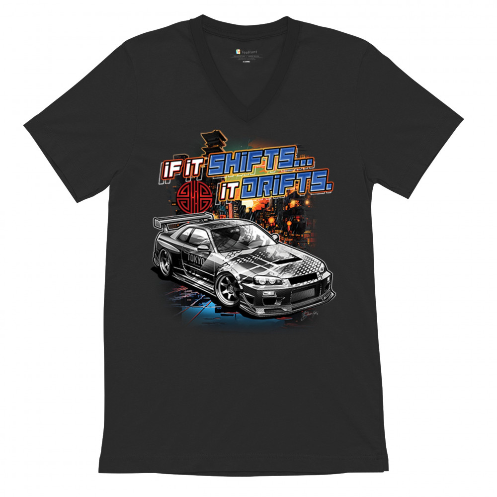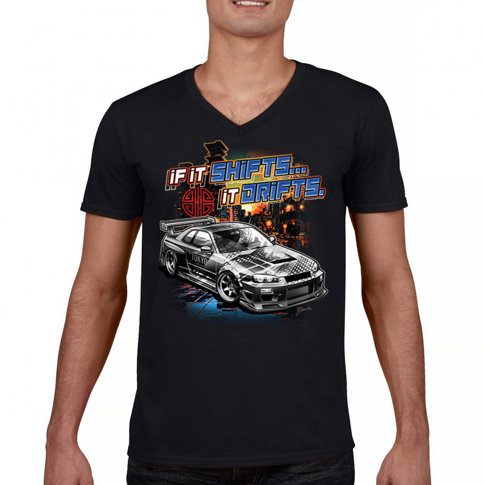 IF IT SHIFTS IT DRIFTS v-neck t-shirt racing custom culture japanese cars tee black