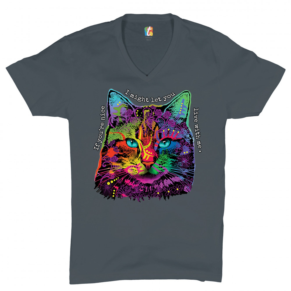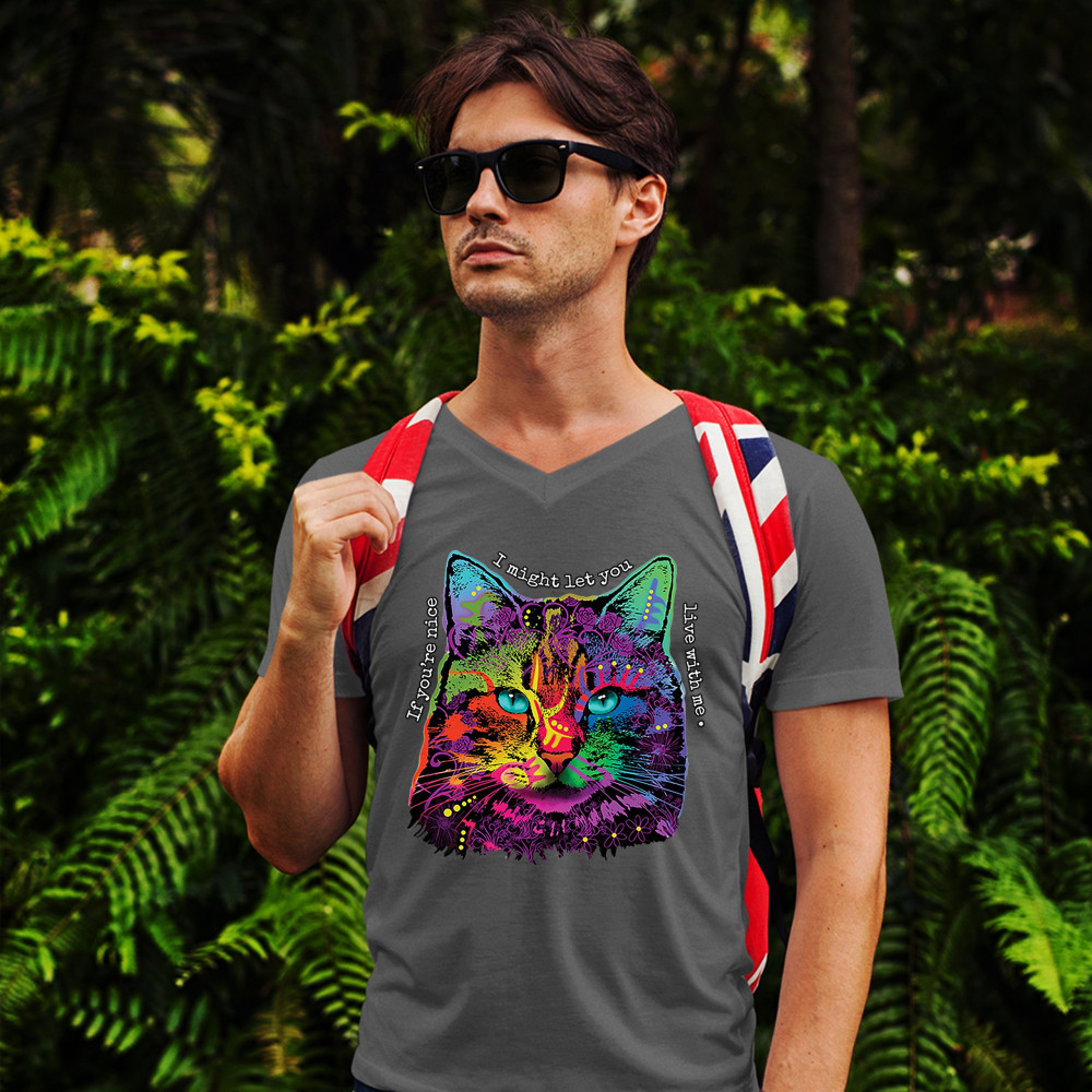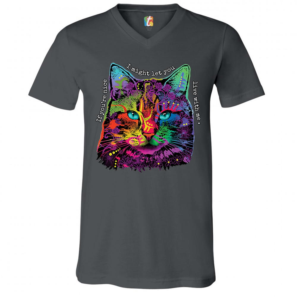 IF YOU'RE NICE I MIGHT LET YOU LIVE WITH ME v-neck t-shirt andy maxx cat tee charcoal