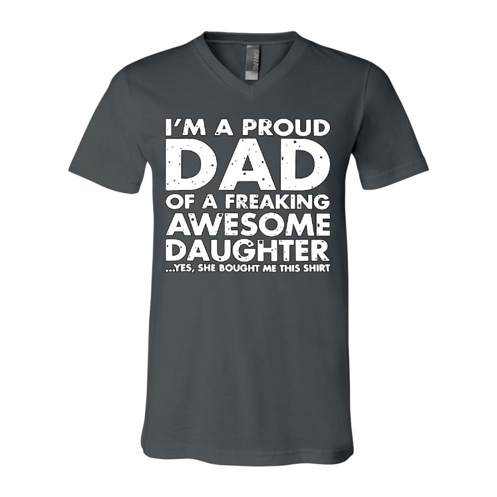 PROUD DAD OF FREAKING AWESOME DAUGHTER v-neck t-shirt father's day charcoal