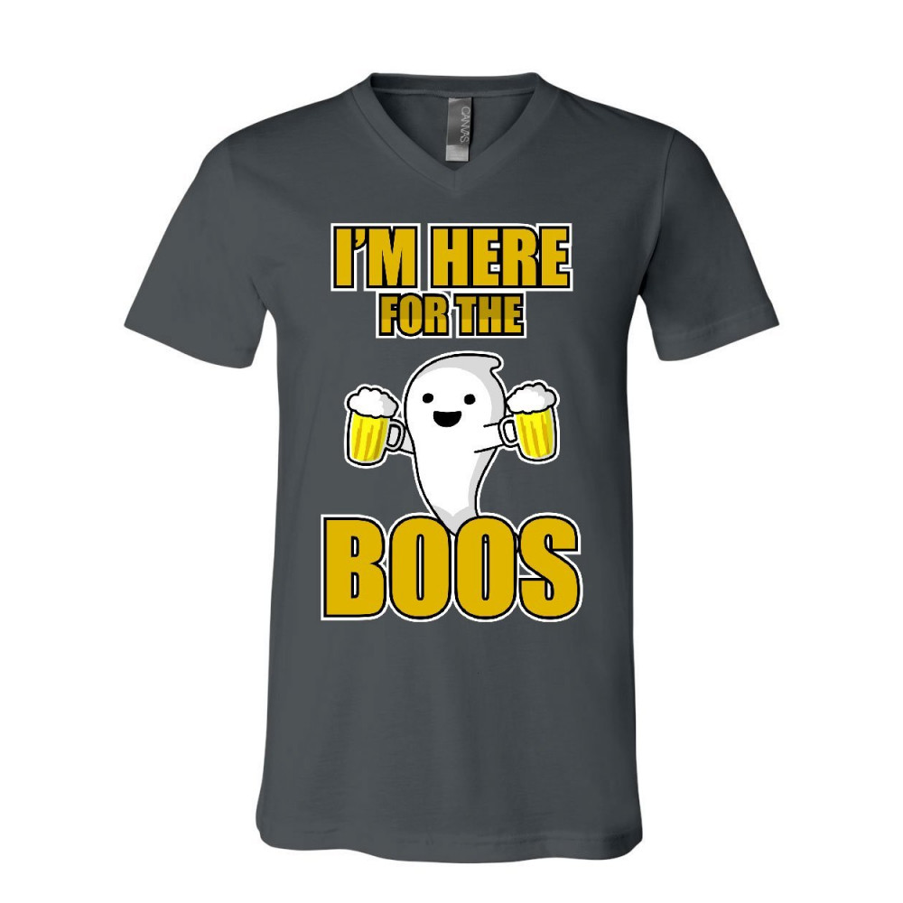 I'M HERE FOR THE BOOS v-neck t-shirt halloween ghost drinking beer mug tee charcoal