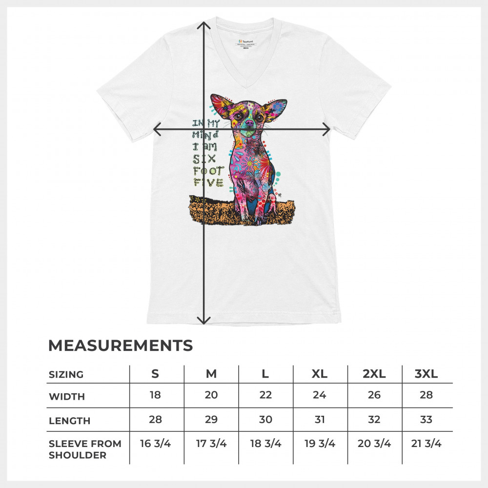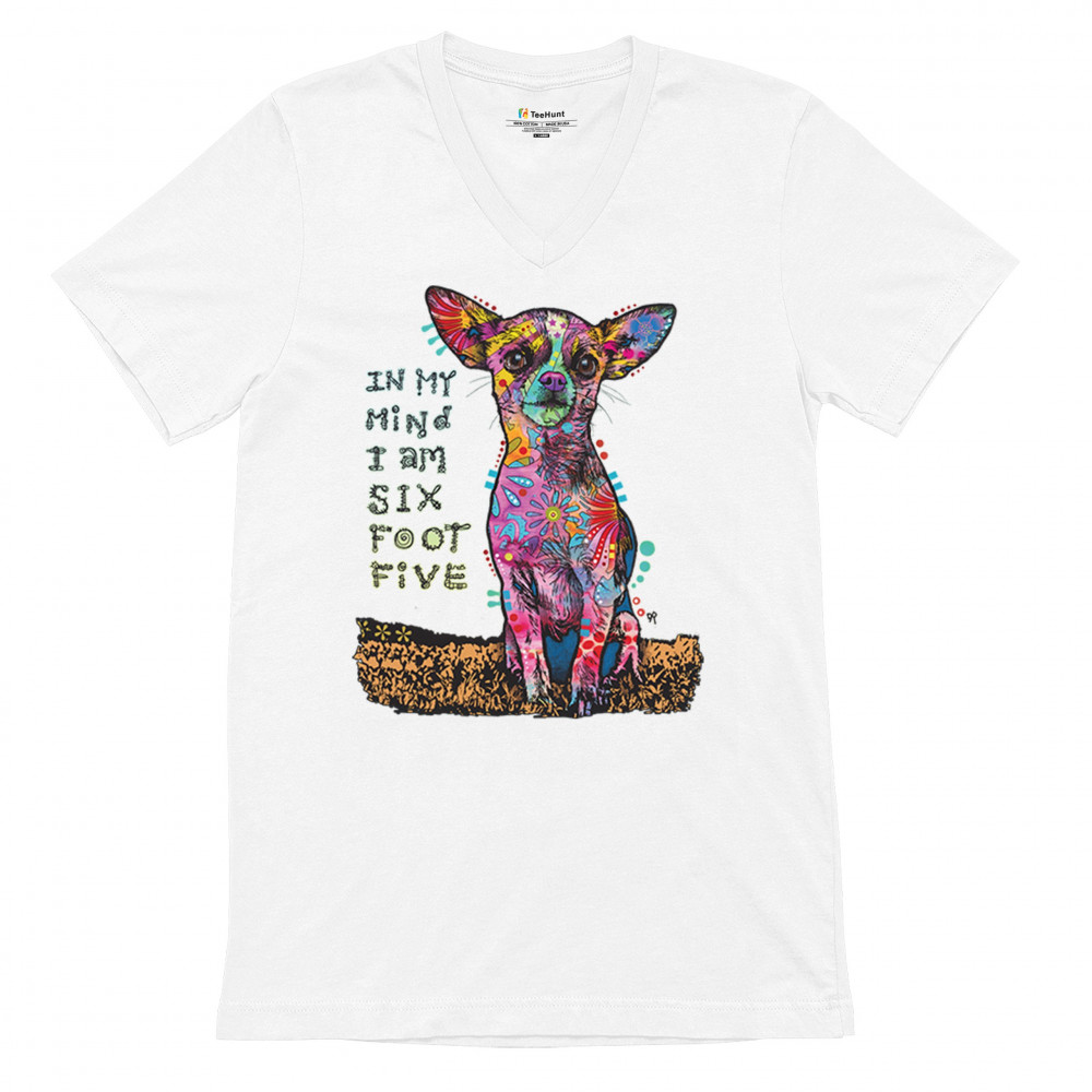 IN MY MIND I'M SIX FOOT FIVE v-neck t-shirt dean russo funny chihuahua tee white