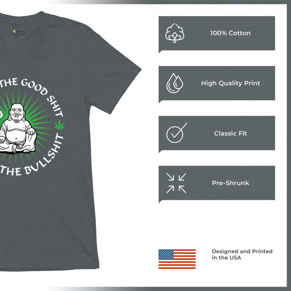 This hilarious and zen-inspired design features a happy Buddha with a joint, surrounded by cannabis leaves. “Inhale the Good Shit, Exhale the Bullshit†delivers chill stoner wisdom with a wink. Ideal for mindful marijuana lovers, 420 fans, or spiritual rebels with a sense of humor and a love for weed.