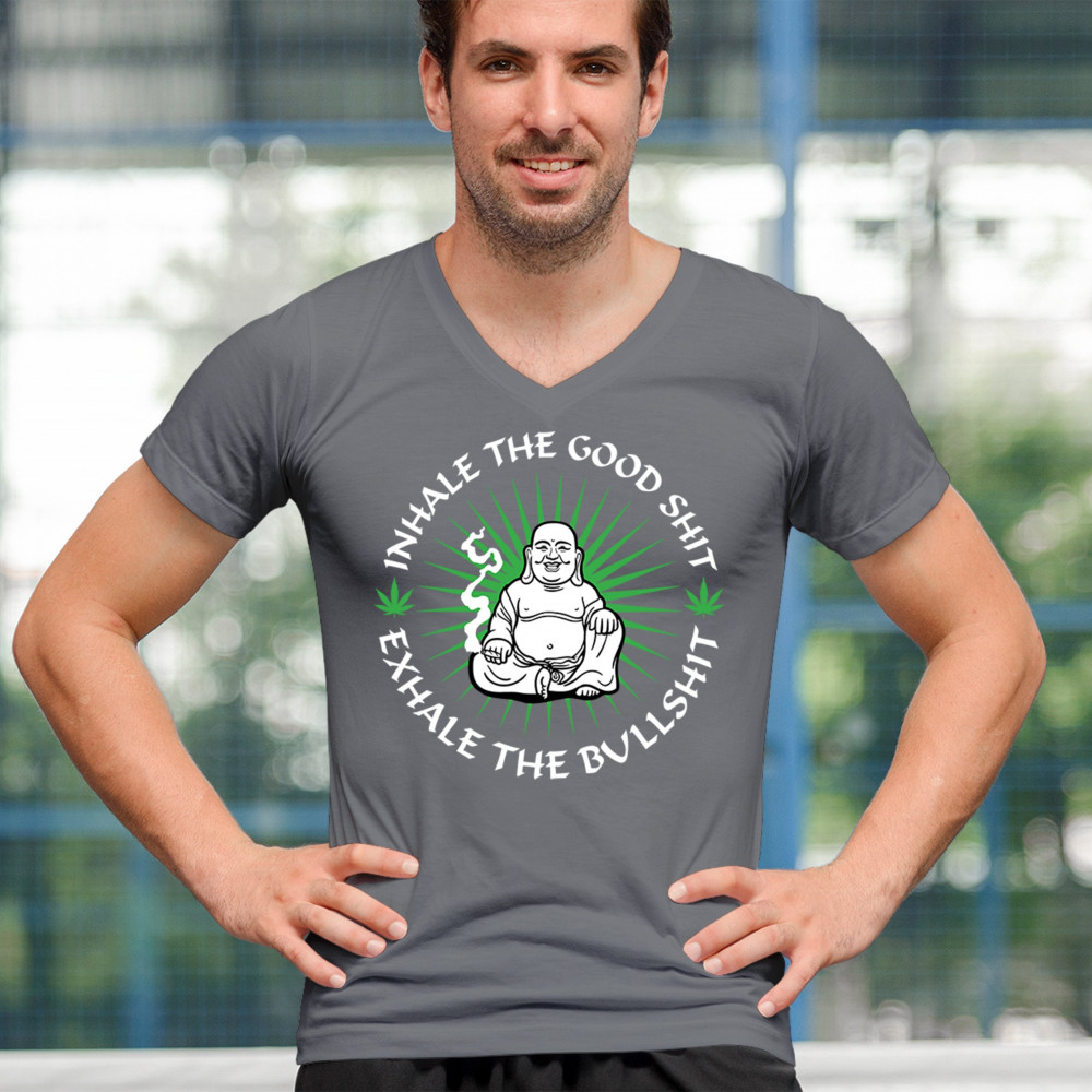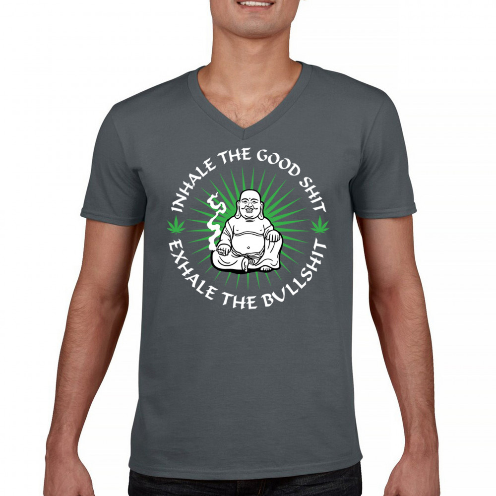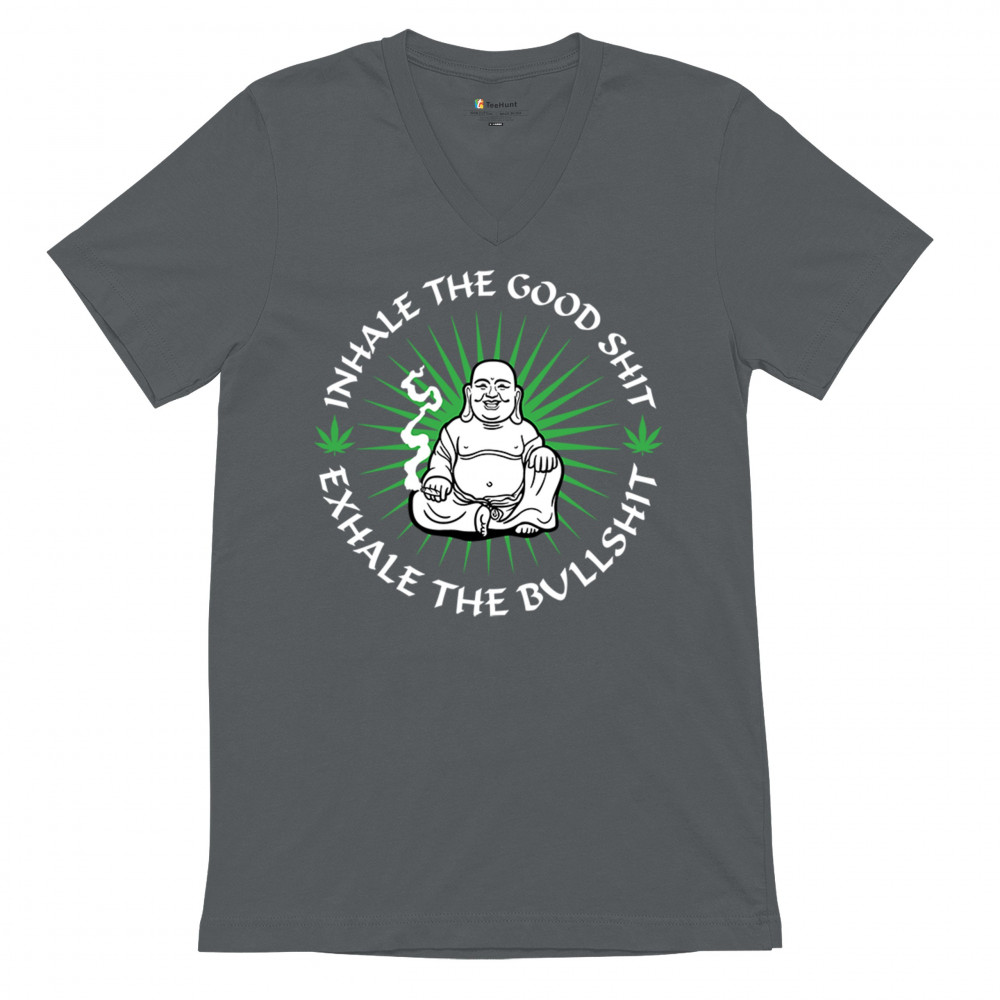 Stoner Buddha design with weed leaves and funny zen slogan—perfect for chill 420 lovers who inhale peace and exhale the BS.