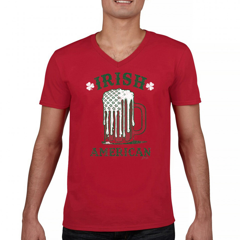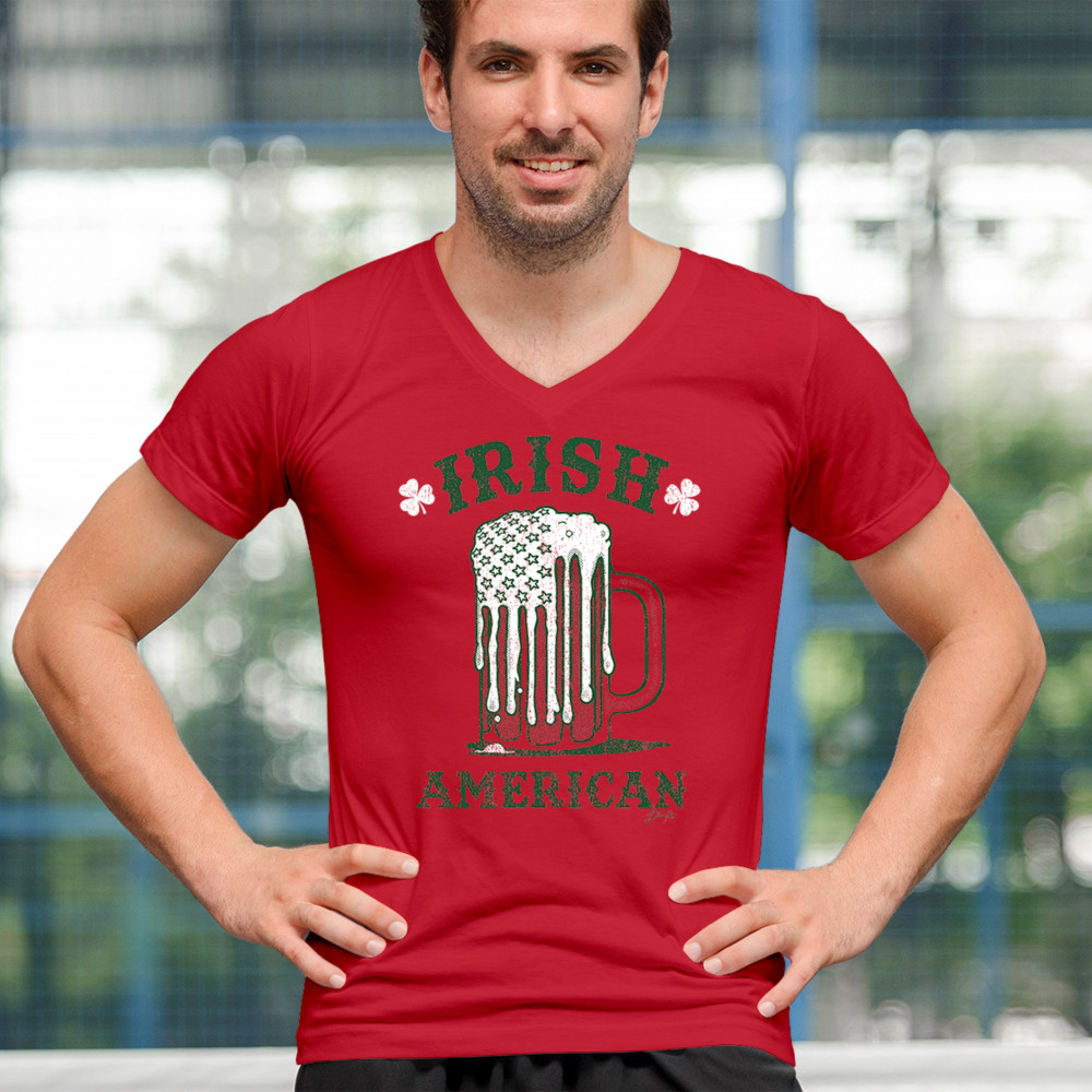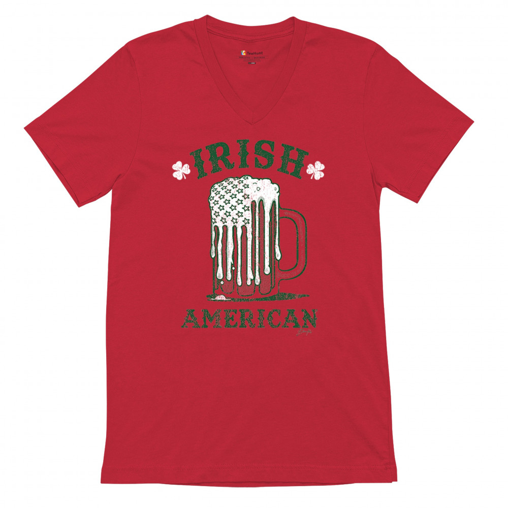 IRISH AMERICAN ST PATRICK'S DAY v-neck t-shirt shamrock shenanigans beer tee red