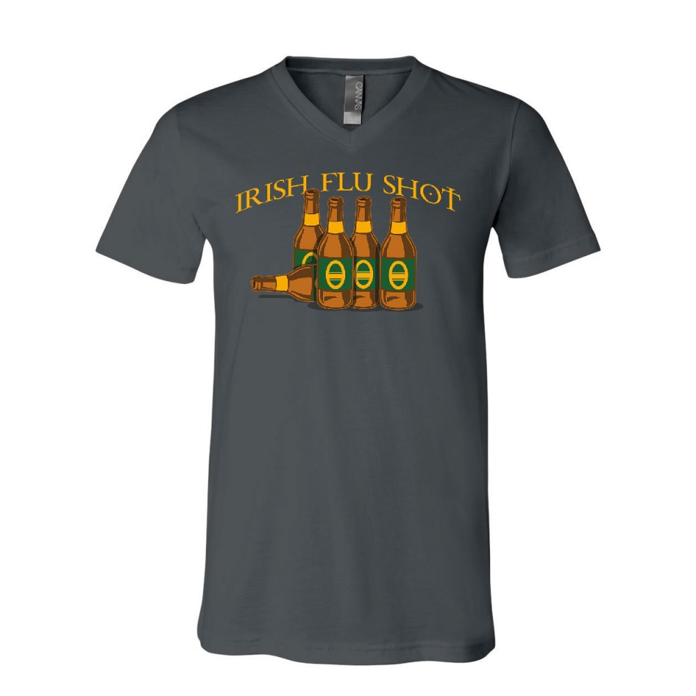 IRISH FLU SHOT FUNNY v-neck t-shirt st patrick's day pubs drinking beer tee charcoal
