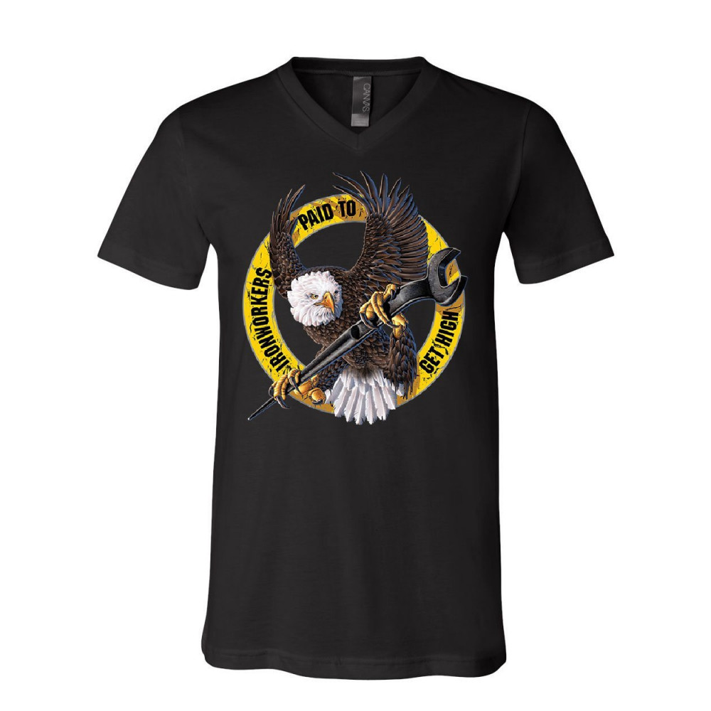 IRONWORKERS PAID TO GET HIGH v-neck t-shirt construction workers union tee black