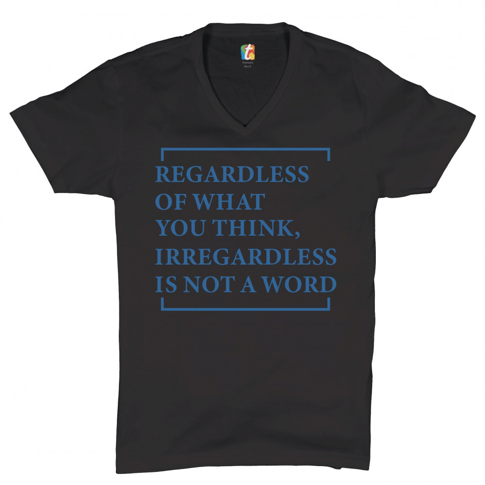 A funny print saying "regardless of what You think, irregardless is not a word". A great choice to wear to make people smile.