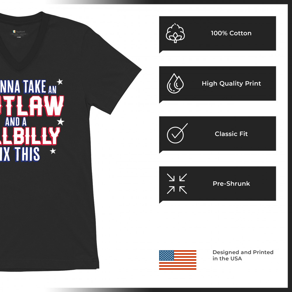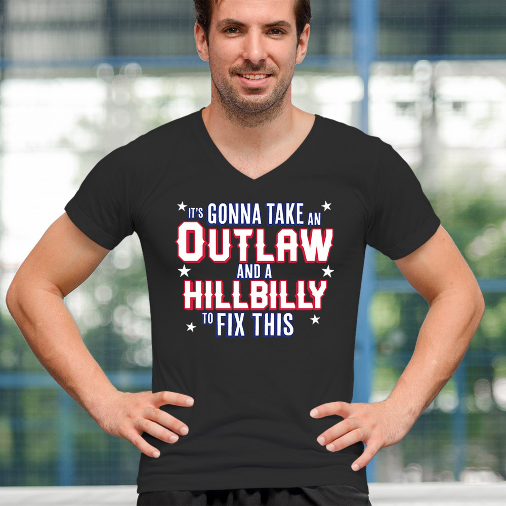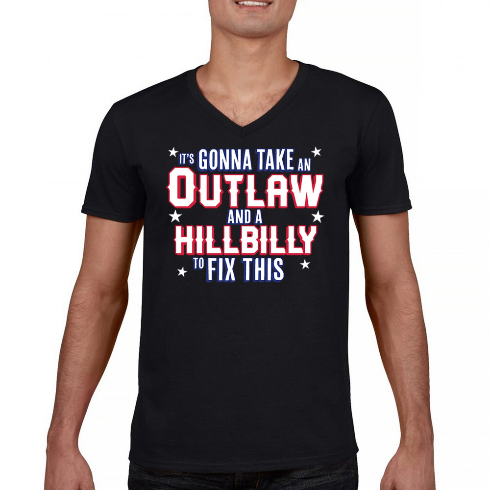 IT'S GONNA TAKE AN OUTLAW AND A HILLBILLY TRUMP 24 v-neck t-shirt maga usa tee black