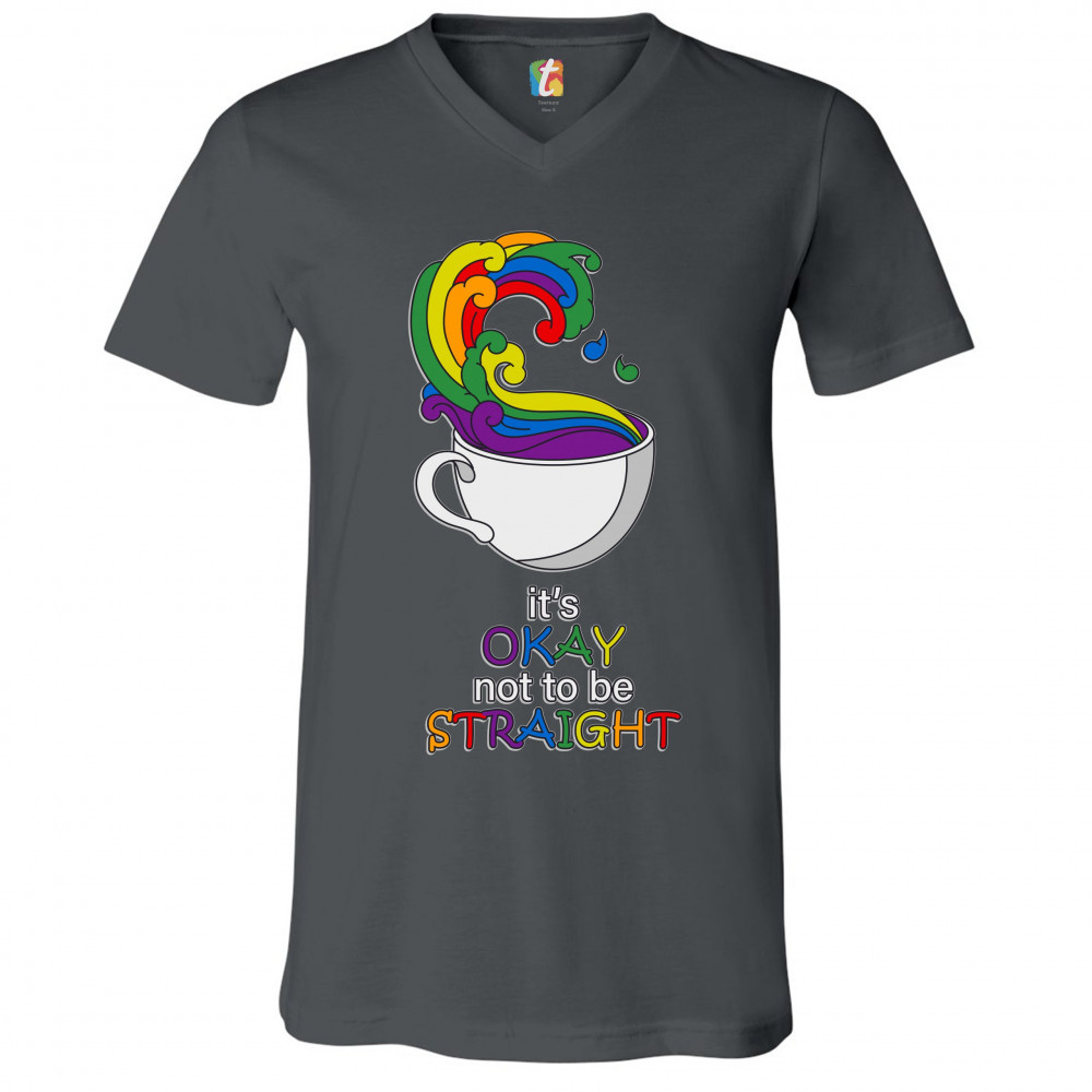 IT'S OKAY NOT TO BE STRAIGHT v-neck t-shirt gay acceptance lgbtq pride tee charcoal