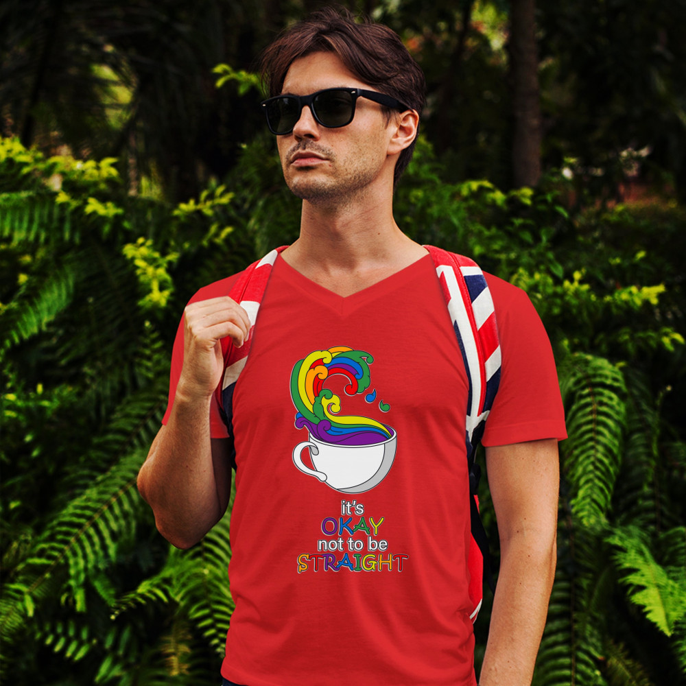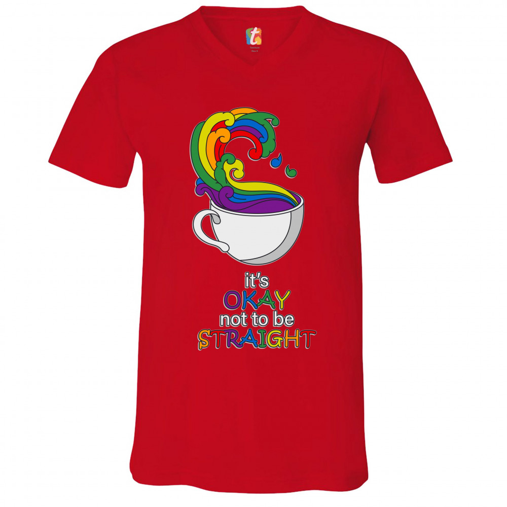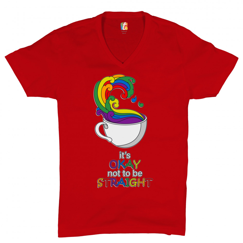 IT'S OKAY NOT TO BE STRAIGHT v-neck t-shirt gay acceptance lgbtq pride tee red