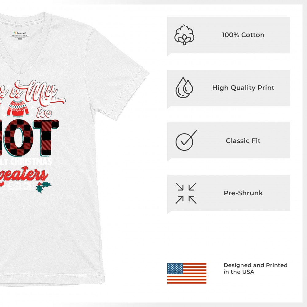 Stay festive without the extra warmth! This "Too Hot for Ugly Christmas Sweaters" shirt is perfect for those who love Christmas cheer with a lighthearted touch.