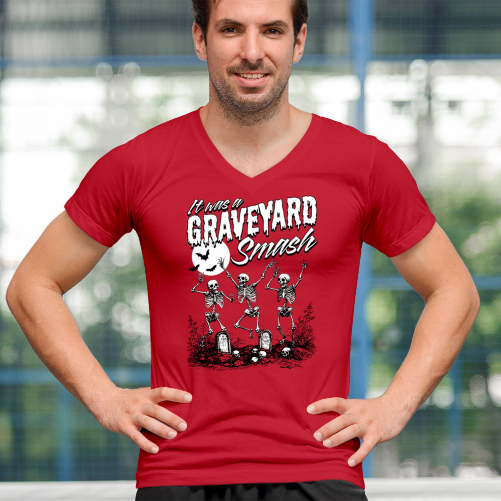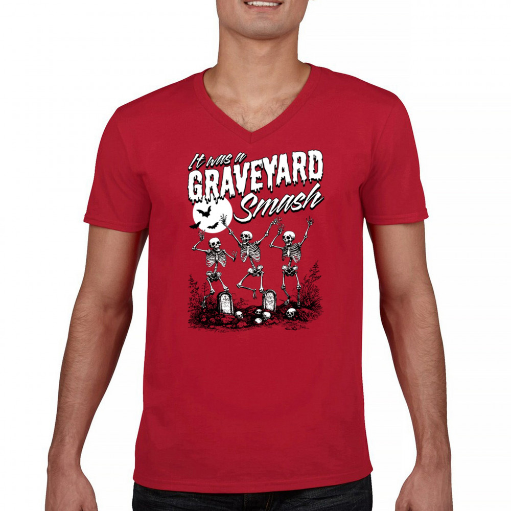 Add a touch of spooky fun to your Halloween attire with this "Graveyard Smash" design, showcasing skeletons dancing under the moonlight in a graveyard. Ideal for anyone who loves Halloween, this graphic tee is perfect for parties, haunted houses, or casual trick-or-treating. Made from high-quality materials, it offers both comfort and style, ensuring you look great while embracing the festive spirit. Available in multiple sizes, this shirt is a must-have for your Halloween collection.