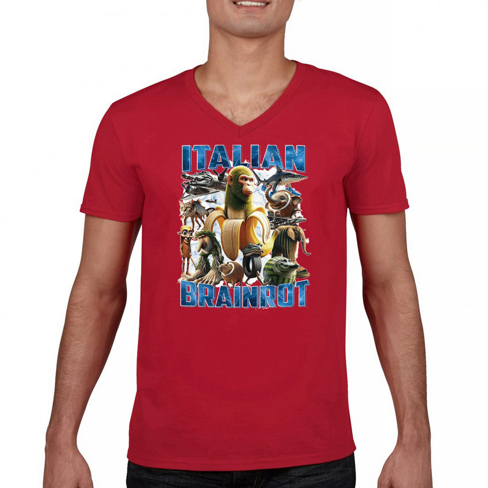 This design captures the full force of Italian brainrot—bananas, sharks, monkeys, and meme beasts collide in an unfiltered internet-core explosion. Perfect for fans of cursed humor, Gen Z trends, absurd fashion, TikTok memes, ironic style, surreal pop art, chaotic culture, digital nonsense, Gen Alpha brainrot, and hyper-online energy.