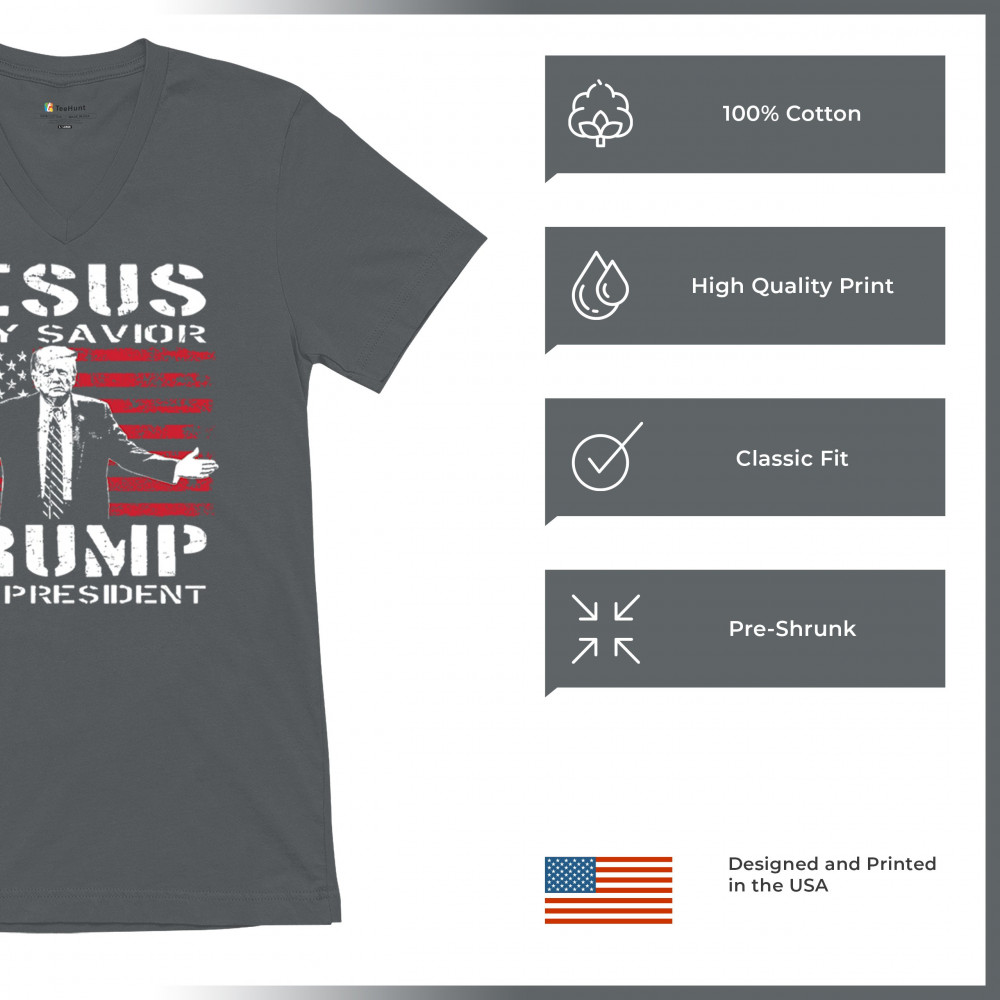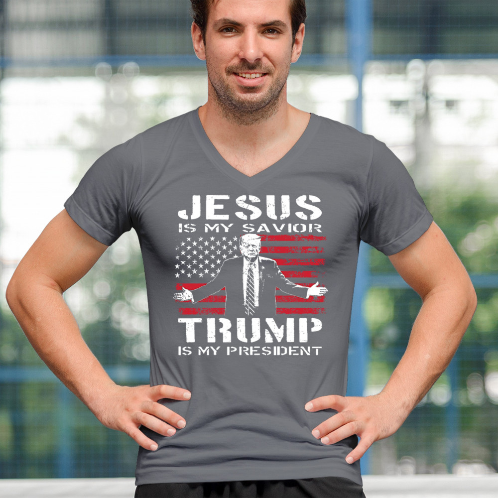 Express your unwavering faith and patriotism with the "Jesus is My Savior, Trump is My President" design. Perfect for conservatives, Republicans, and Trump supporters, this bold graphic combines spiritual devotion with a commitment to America First values. Celebrate the 47th President and the fight for freedom with this standout piece at rallies, events, or as a unique gift.