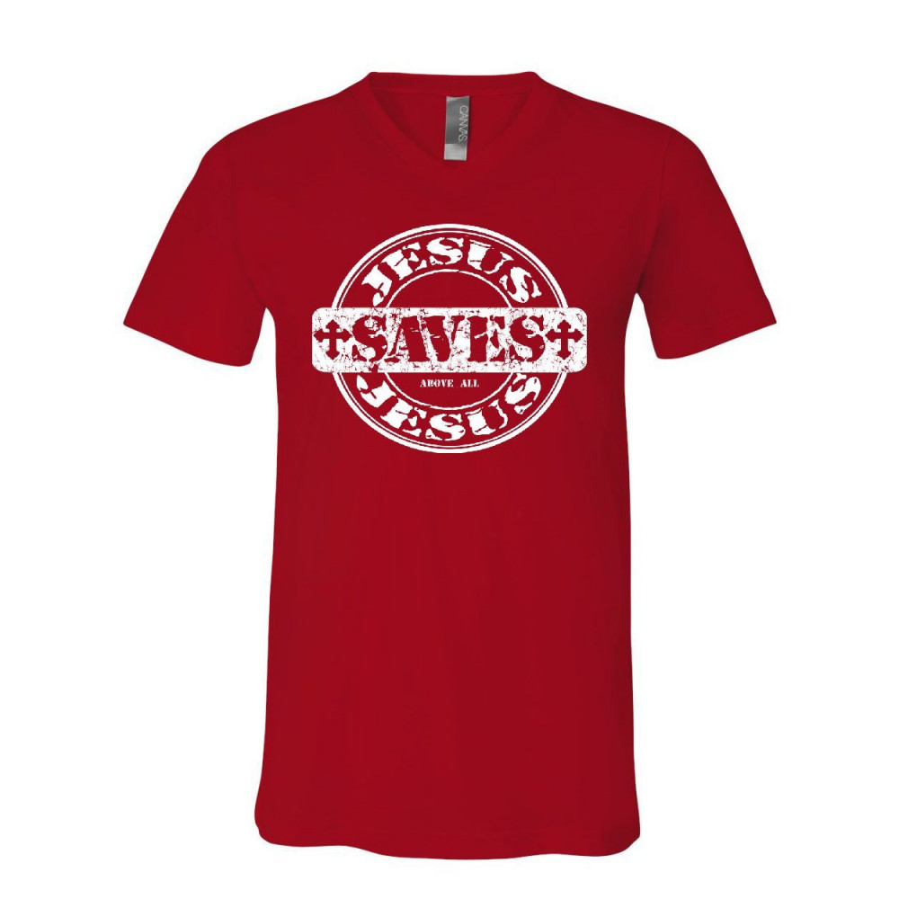 JESUS SAVES JESUS ABOVE ALL jesus saves v-neck t-shirt jesus christ above all christianity bible tee red