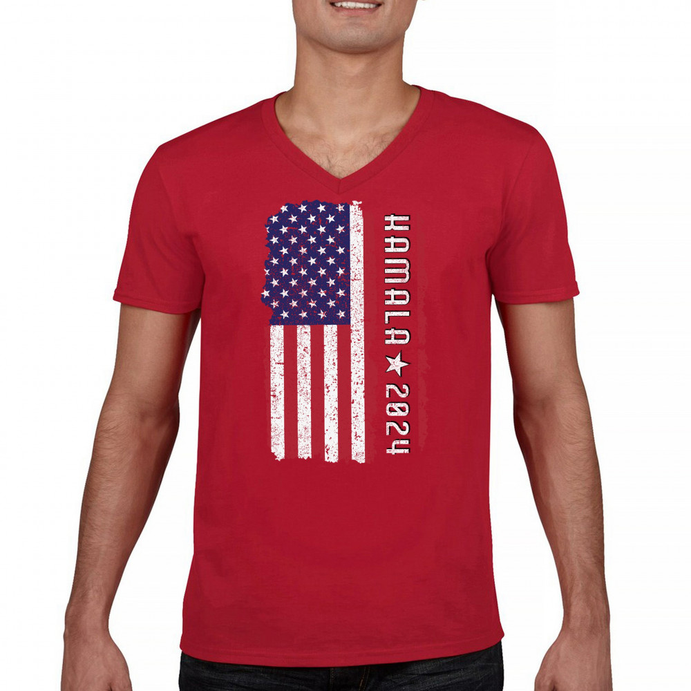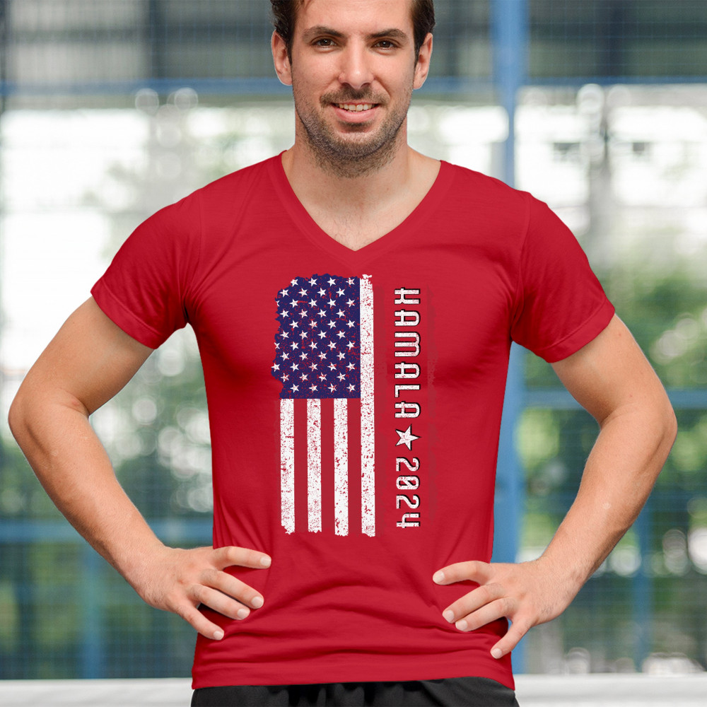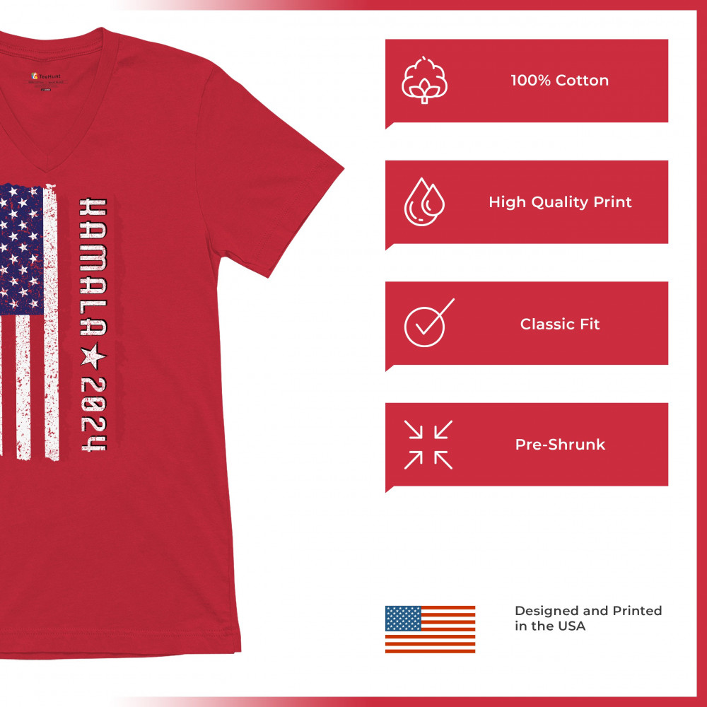 Support Kamala Harris 2024 with a bold design featuring a distressed American flag. Perfect for rallies and political events. Celebrate diversity!