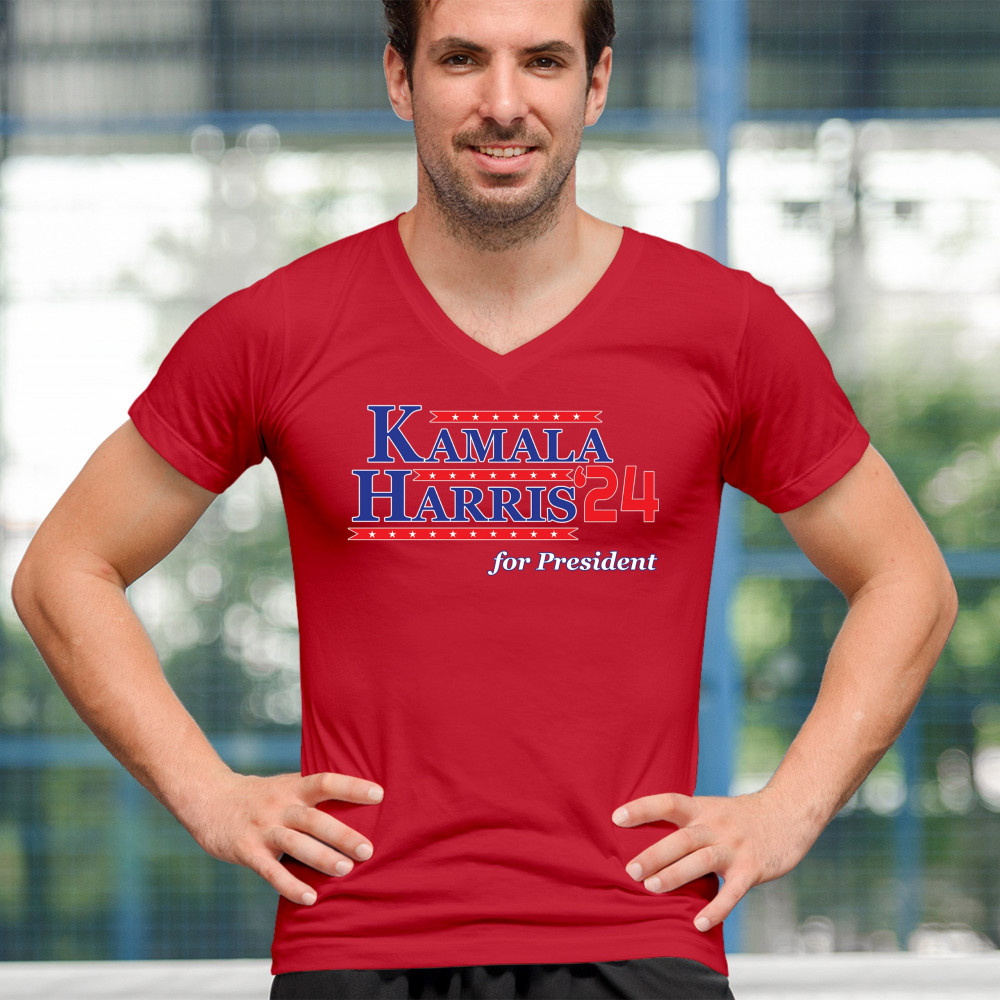 Celebrate your support for Kamala Harris with this striking design. Featuring "Kamala Harris '24" in patriotic red, white, and blue, this piece is perfect for anyone dedicated to the 2024 presidential campaign. Whether you're attending a rally, a campaign event, or simply want to show your support, this design is ideal. Stand with Kamala Harris and advocate for liberal, democratic values, and the empowerment of minority communities. Perfect for supporters of black Americans, Hispanic Americans, and the LGBTQ community.