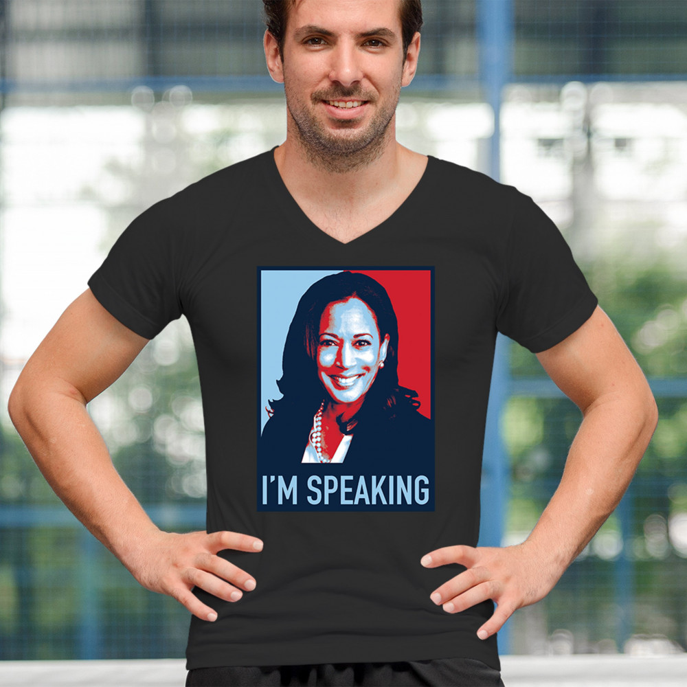 KAMALA HARRIS I'M SPEAKING 2024 v-neck t-shirt president 47 vote blue usa tee black