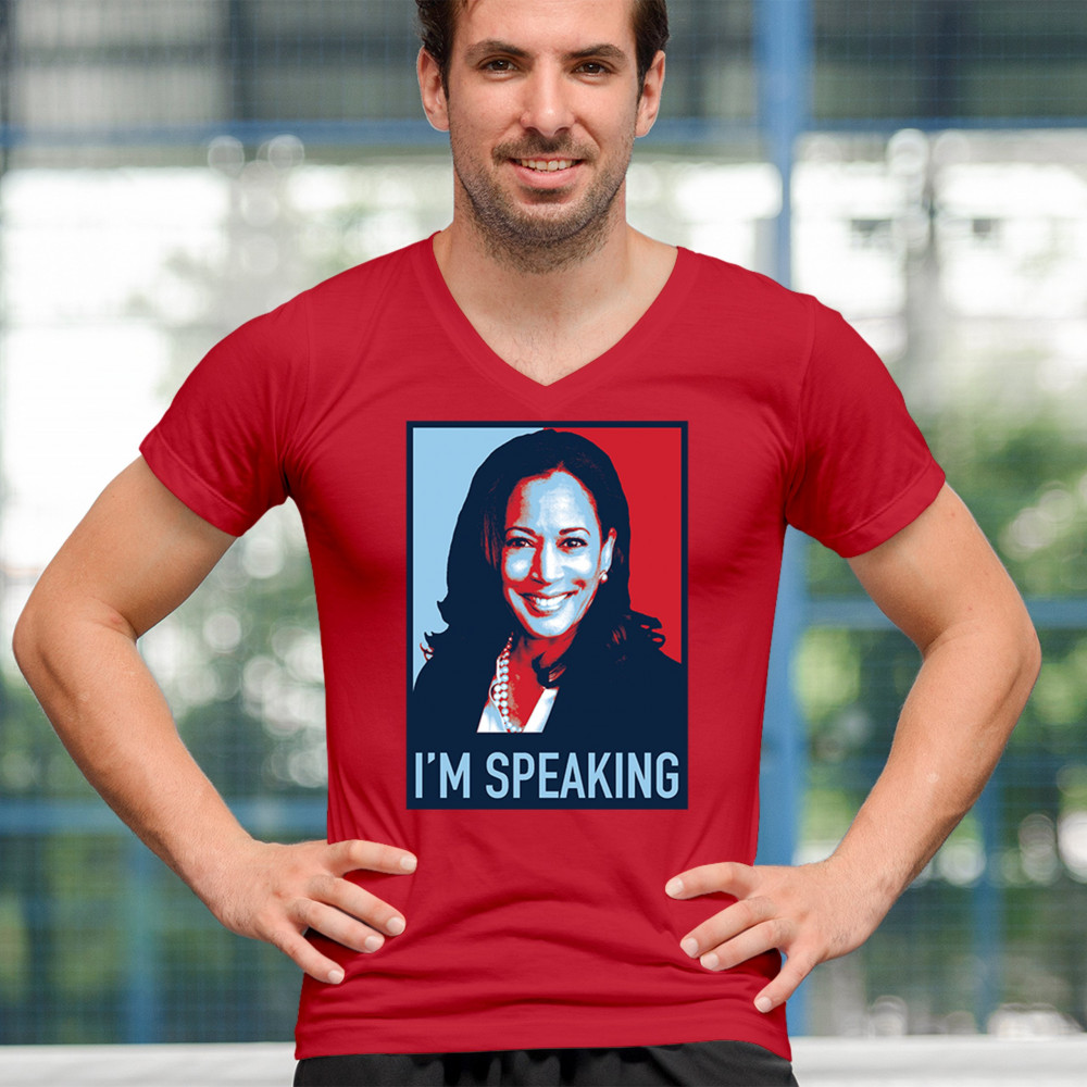 Show your support for Kamala Harris and Tim Walz with this "I'm Speaking" design. A bold statement celebrating liberal values and progressive policies. "Let's Win This"