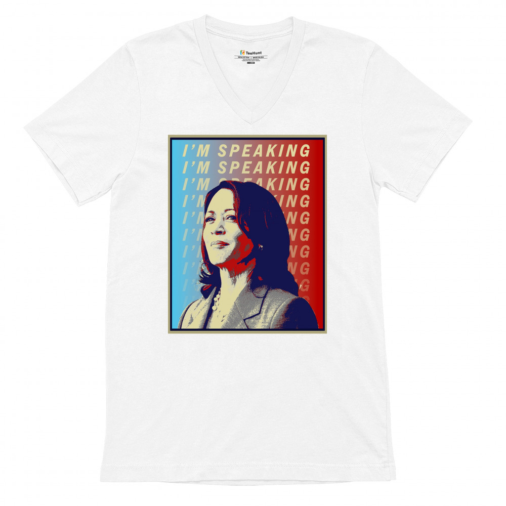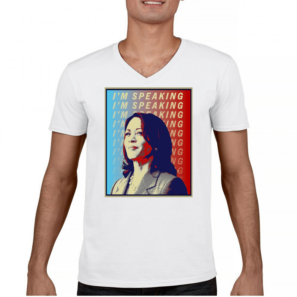 Support Kamala Harris with this bold and inspiring design. "I'M SPEAKING" echoes her powerful voice in the political arena, making it perfect for anti-Trump supporters, liberals, and Democrats. Crafted from durable materials, this design is comfortable for any event, from rallies to casual outings. Celebrate diversity and the historic candidacy of the potential first female president, resonating with black Americans, Hispanic Americans, LGBTQ supporters, and other minorities. Make a statement of hope and progress with this unique design.