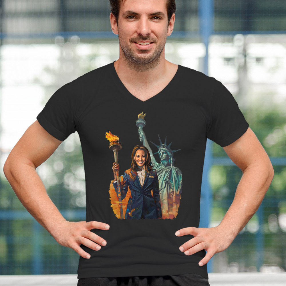 KAMALA HARRIS LIBERTY SYMBOL 2024 v-neck t-shirt president 47 i'm speaking tee black