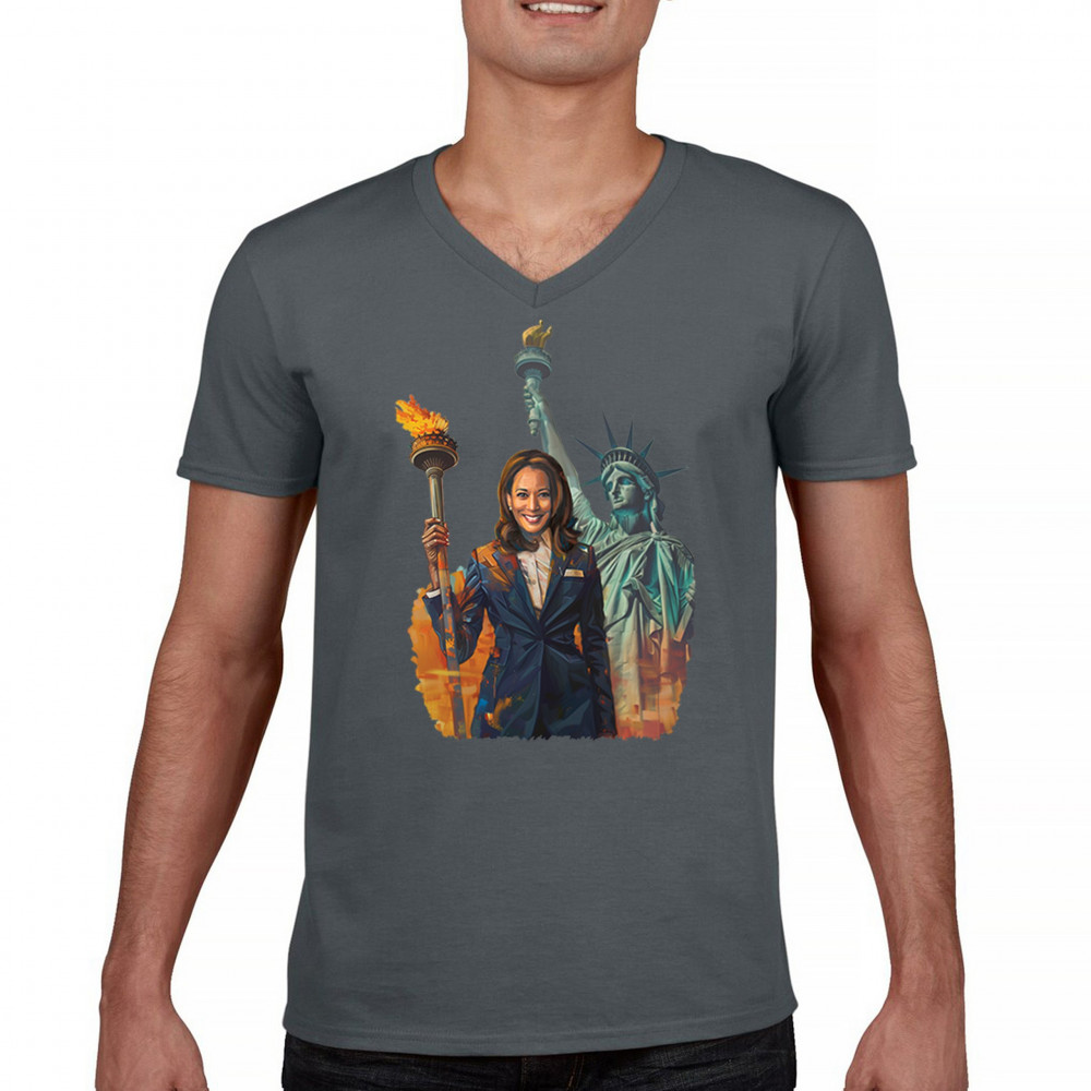 This powerful design featuring Kamala Harris and the Statue of Liberty symbolizes the fight for justice, equality, and a brighter future in the Harris-Walz 2024 campaign. Perfect for rallies, events, and daily wear, this design speaks to supporters of women's rights and liberal values. Show your commitment to a better America with this striking image. Wear it with pride and be part of the movement.