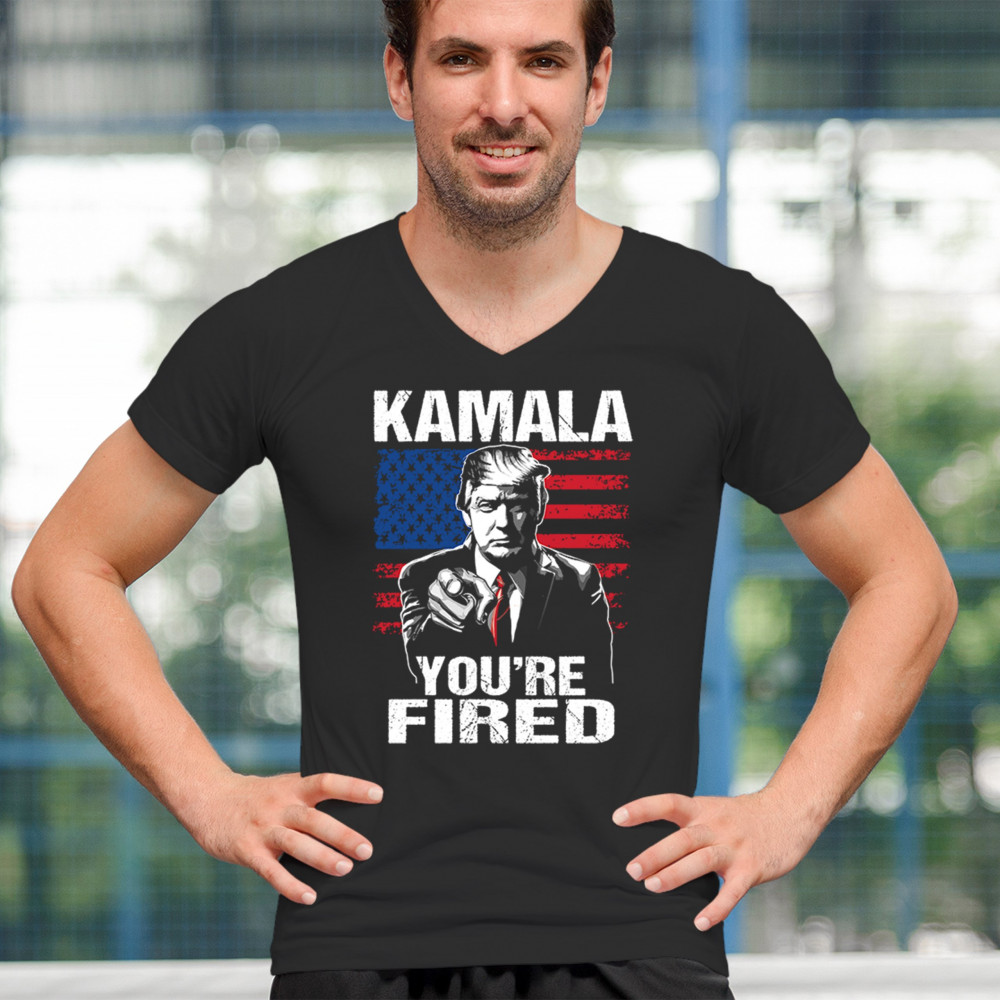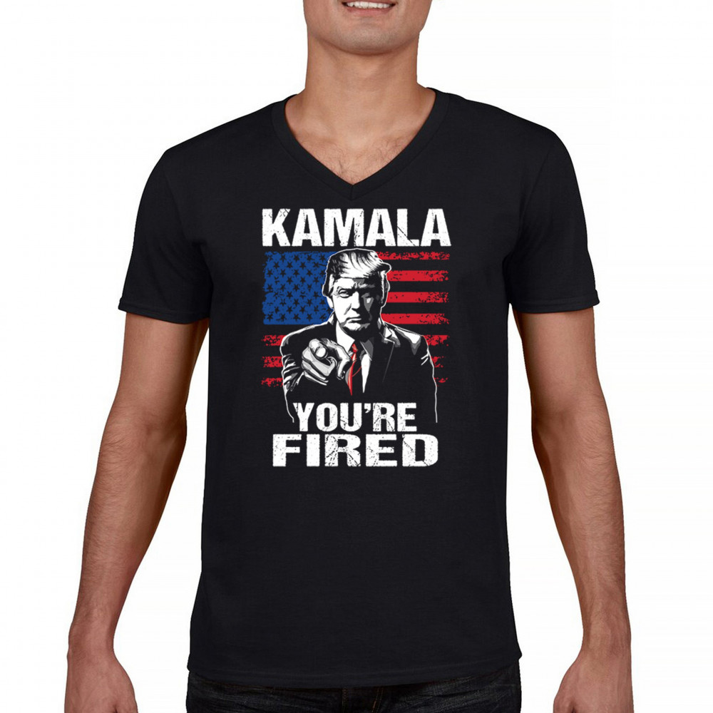 KAMALA YOU ARE FIRED TRUMP 2024 v-neck t-shirt maga 45 47 america first tee black