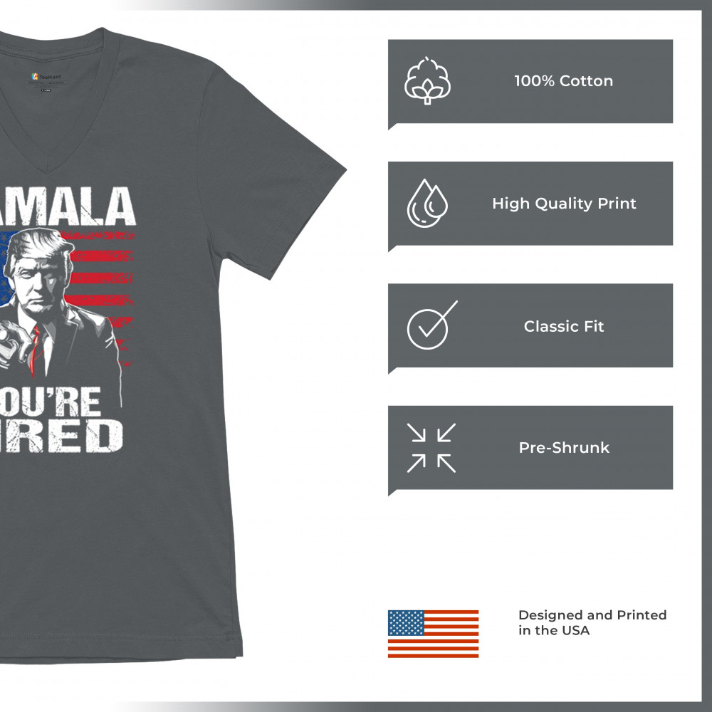 Bold "Kamala, You’re Fired" design for Trump supporters. Celebrate Republican values, America First, and the Red Wave with this patriotic statement.