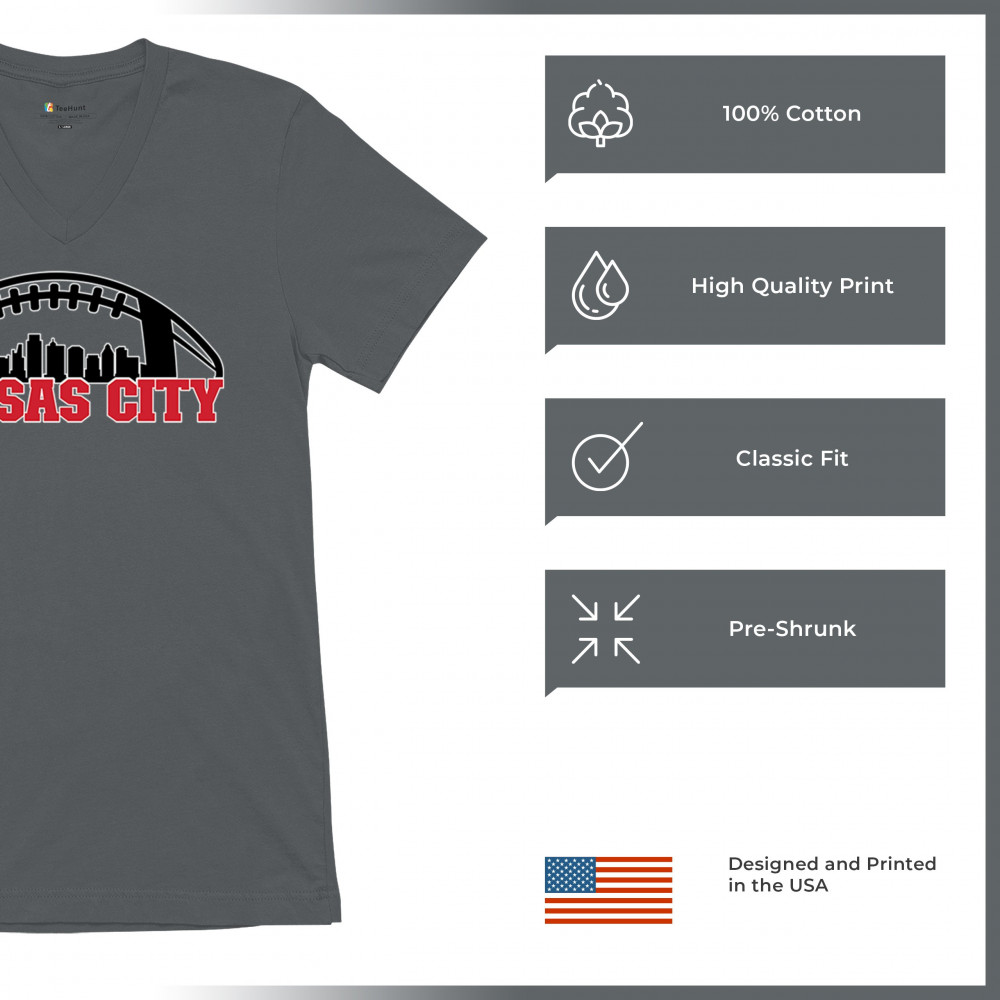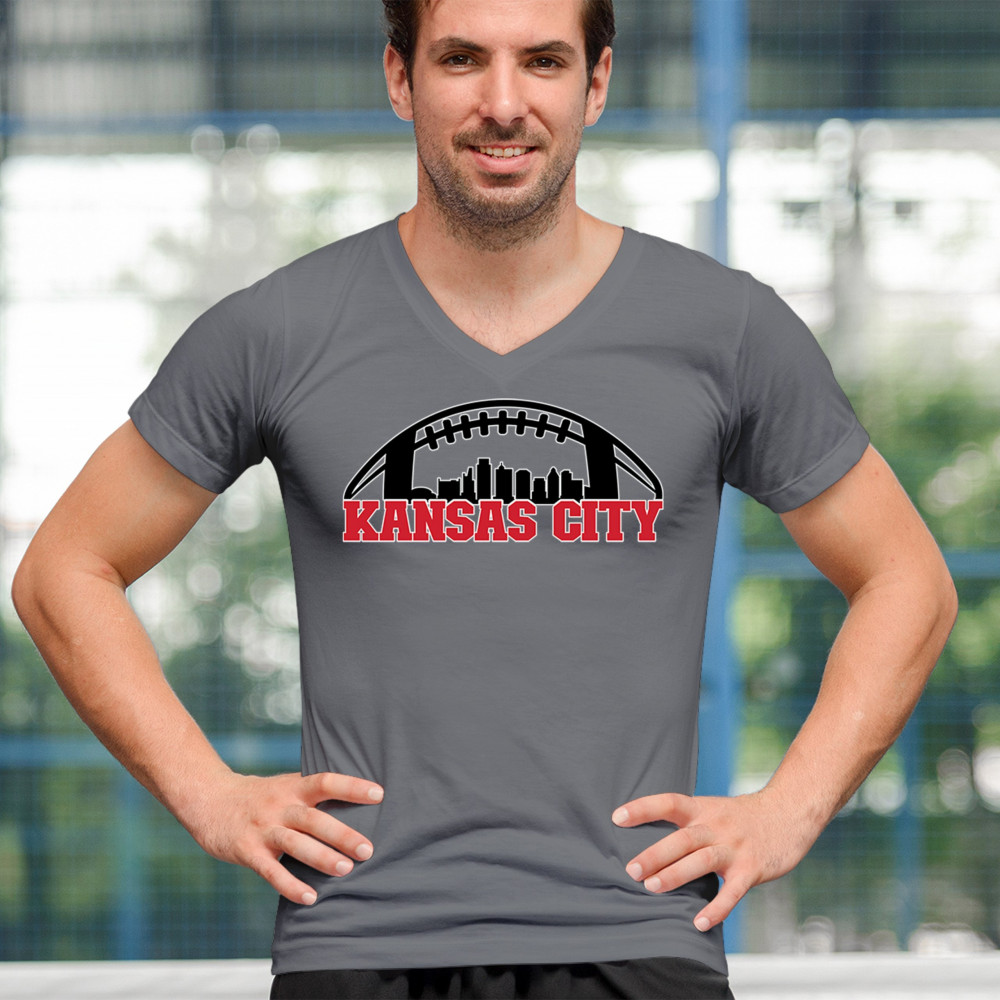 Celebrate Kansas City with a bold football design featuring the city skyline. Perfect for game days, tailgates, or proud sports fans.
