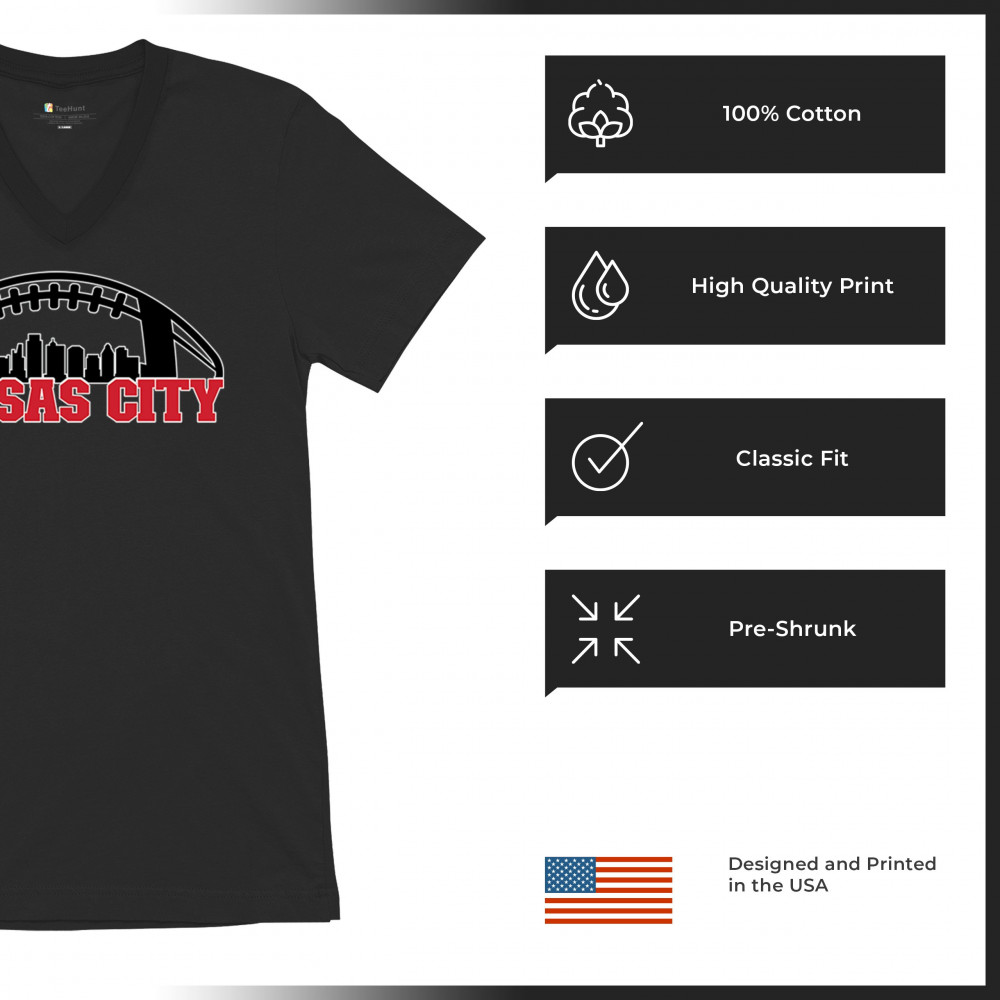 Celebrate Kansas City with a bold football design featuring the city skyline. Perfect for game days, tailgates, or proud sports fans.