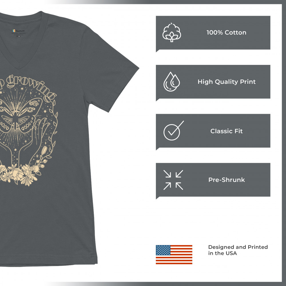 Step into your transformation with this Keep Growing design, featuring a celestial butterfly held between graceful hands and blooming flowers. A visual symbol of healing, renewal, and inner strength—perfect for journaling, meditation, yoga, or nature-inspired living. Ideal for dreamers, wellness seekers, and spiritual adventurers.