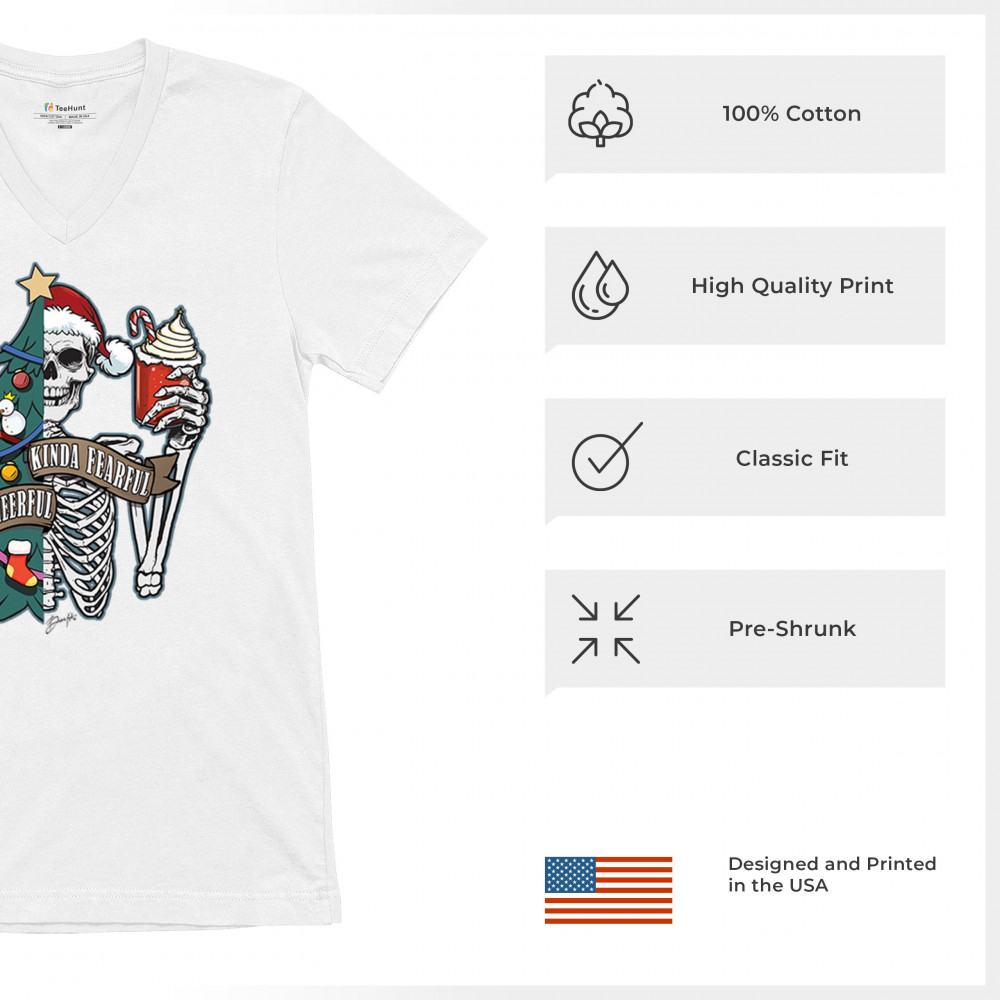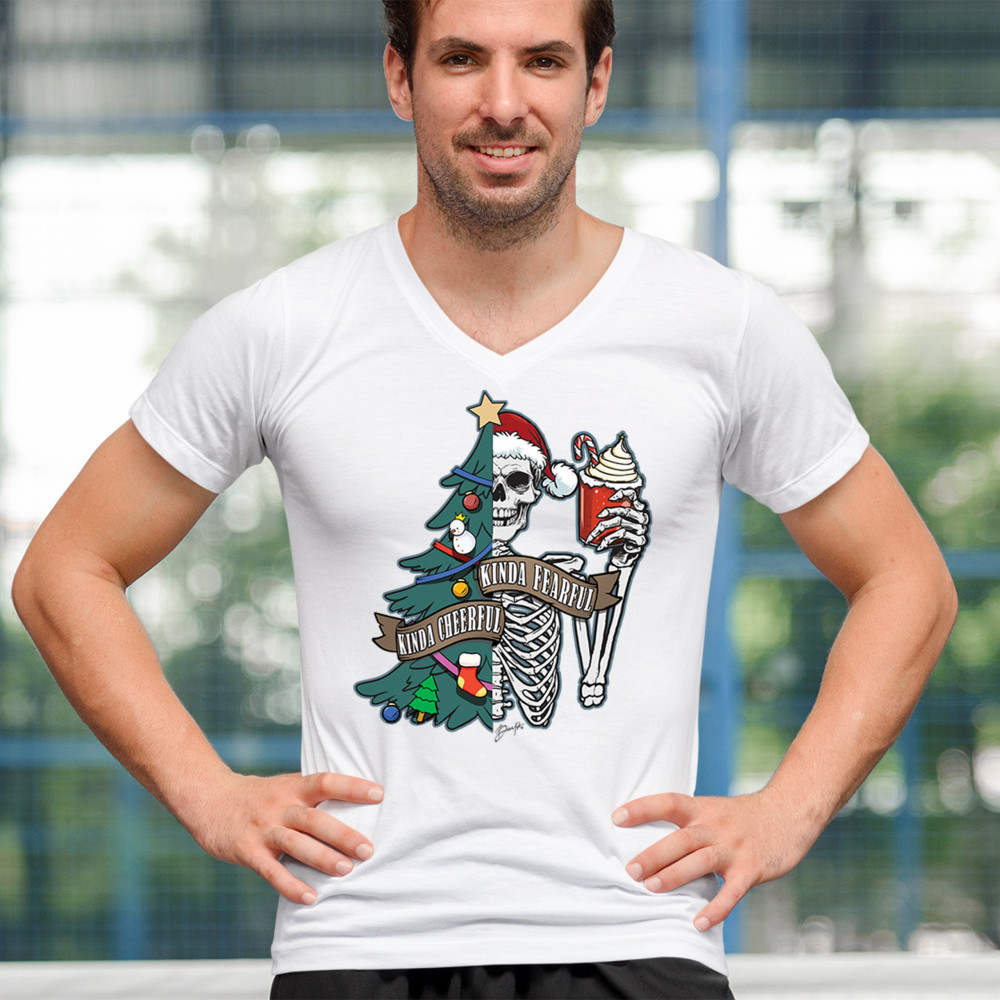 This creative Kinda Cheerful, Kinda Fearful design is a perfect blend of festive and spooky fun! Featuring a half-decorated Christmas tree and skeleton, it’s ideal for those who love combining Halloween and Christmas vibes. Great for secret Santa gifts, matching holiday pajamas, or rocking at your next ugly sweater contest. Perfect for office parties, family mornings, or simply adding some unique charm to your Feliz Navidad celebrations.