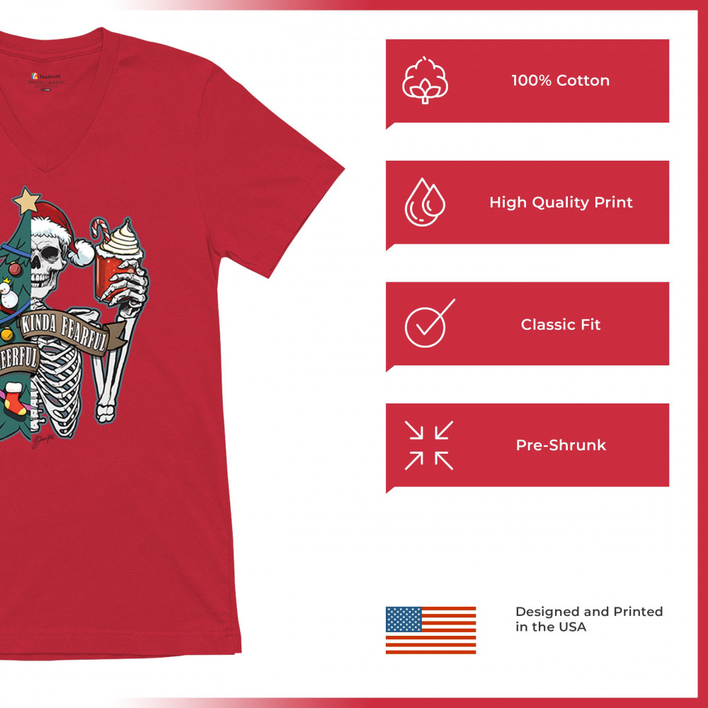 This creative Kinda Cheerful, Kinda Fearful design is a perfect blend of festive and spooky fun! Featuring a half-decorated Christmas tree and skeleton, it’s ideal for those who love combining Halloween and Christmas vibes. Great for secret Santa gifts, matching holiday pajamas, or rocking at your next ugly sweater contest. Perfect for office parties, family mornings, or simply adding some unique charm to your Feliz Navidad celebrations.