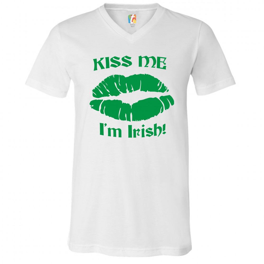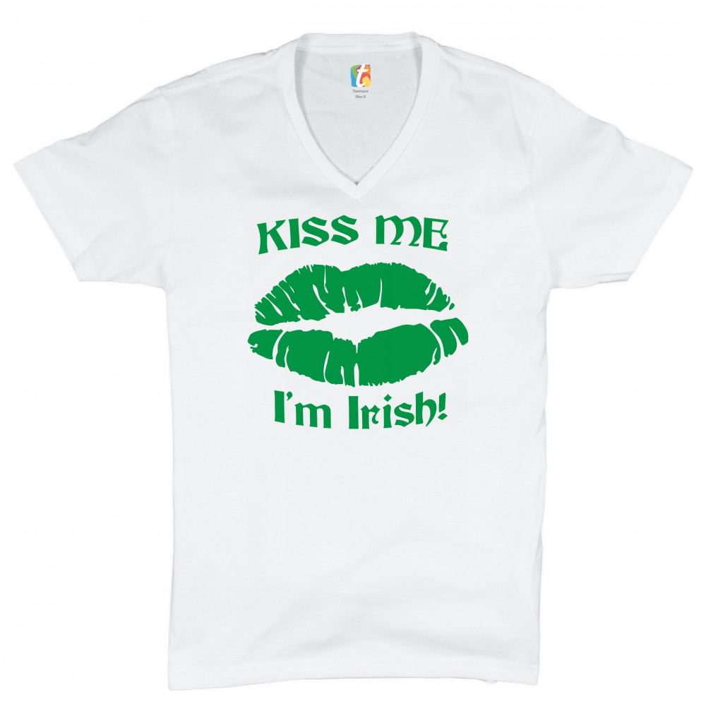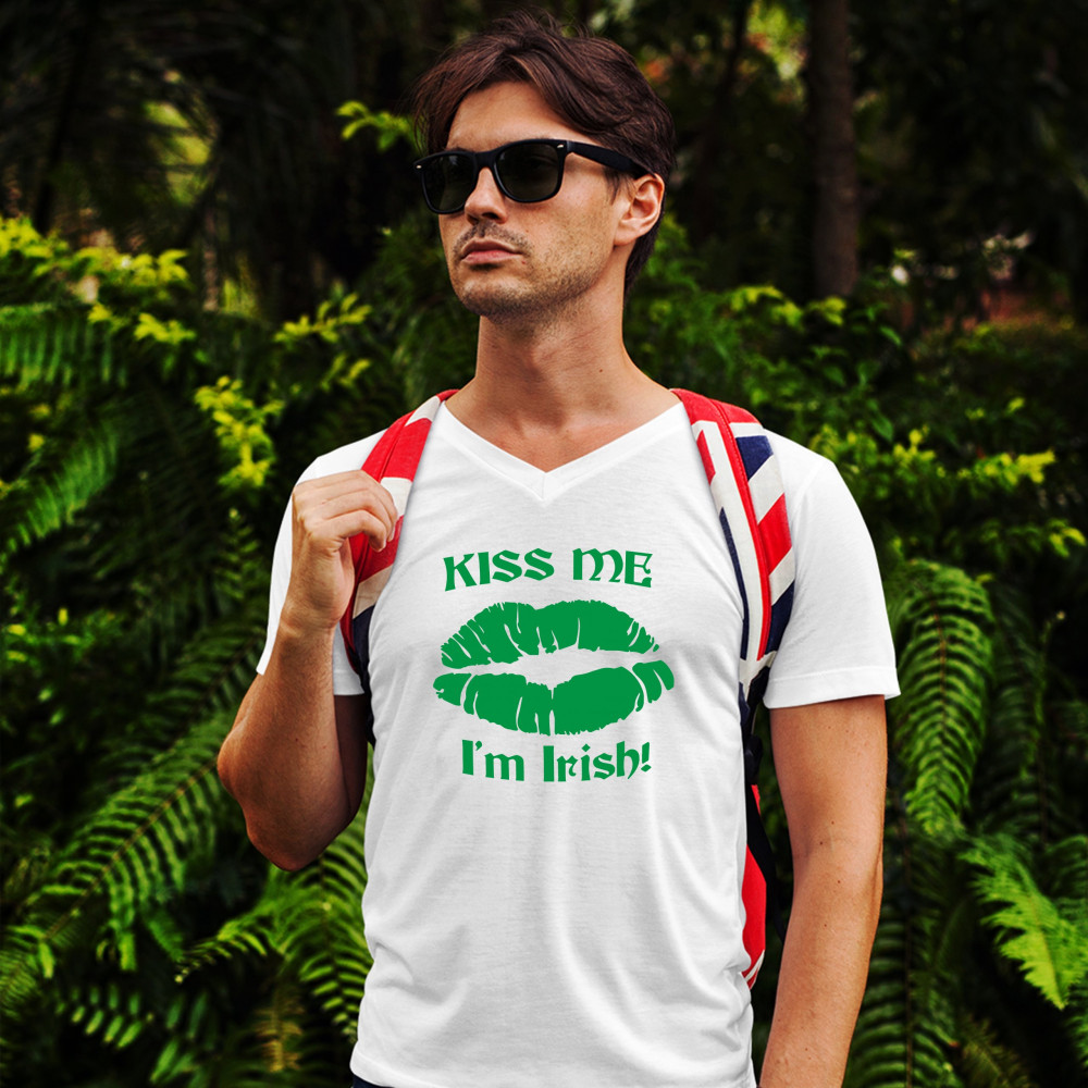 KISS ME I'M IRISH! v-neck t-shirt funny st. patrick's day shenanigans tee white
