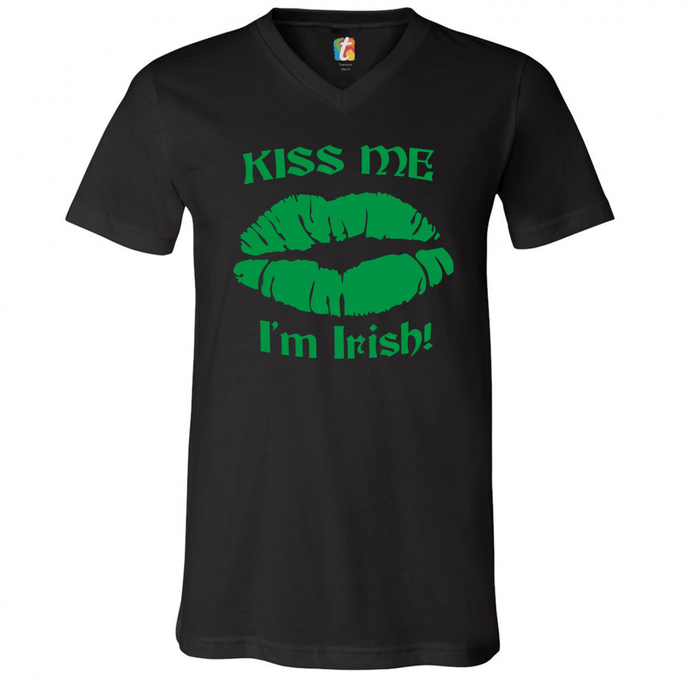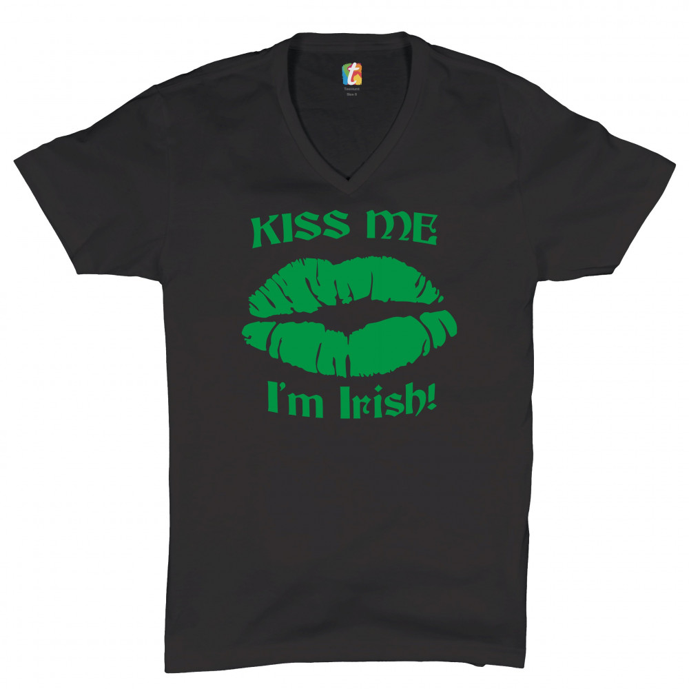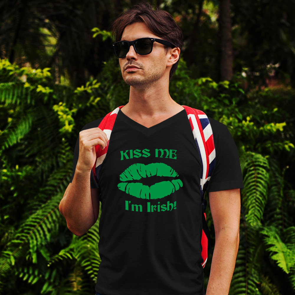 KISS ME I'M IRISH! v-neck t-shirt funny st. patrick's day shenanigans tee black